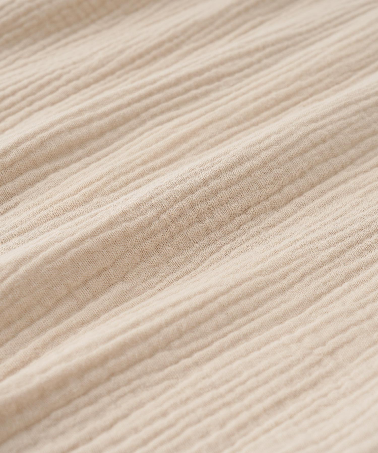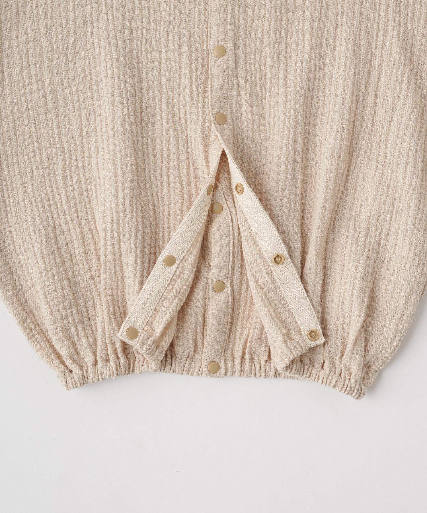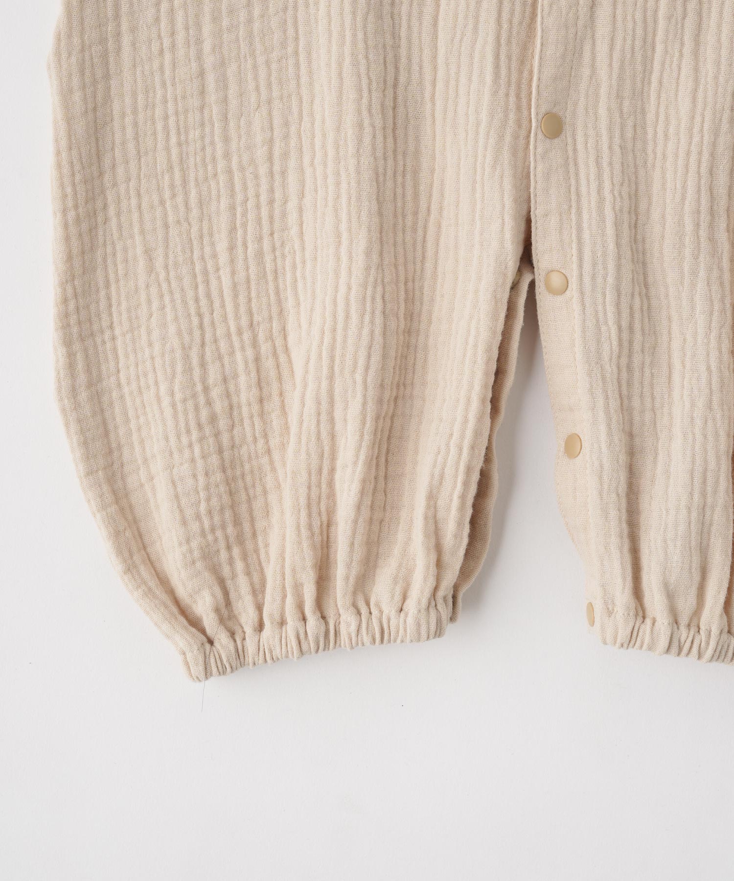 • A stylish double gauze coverall made from 100% cotton that gets softer and more textured with every wash. Its breathable fabric dries quickly even when sweaty, making it perfect for year-round use—spring, summer, fall, and winter.