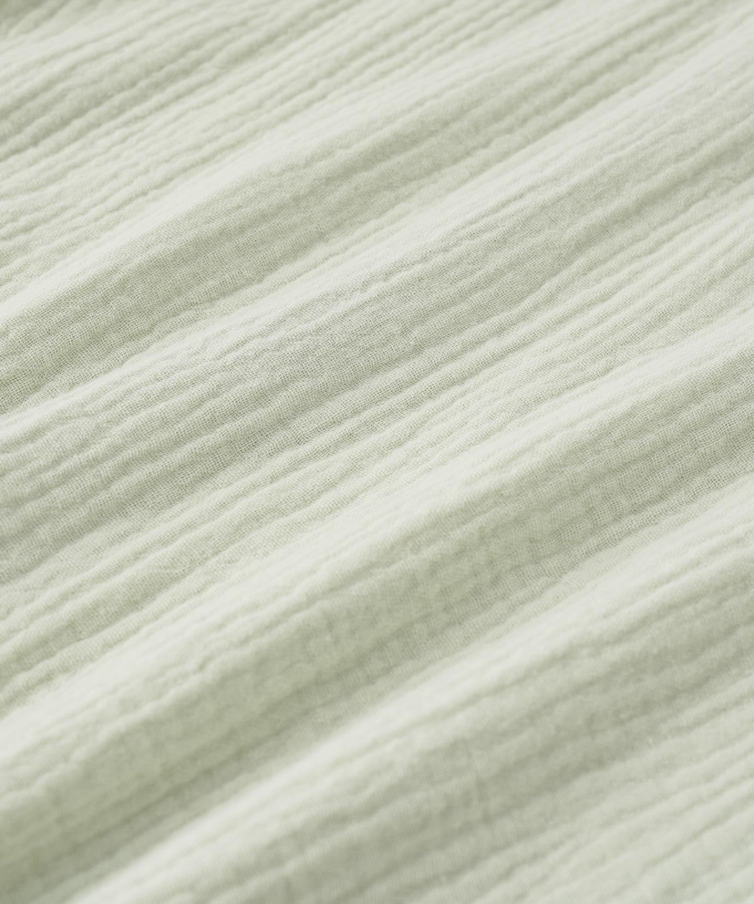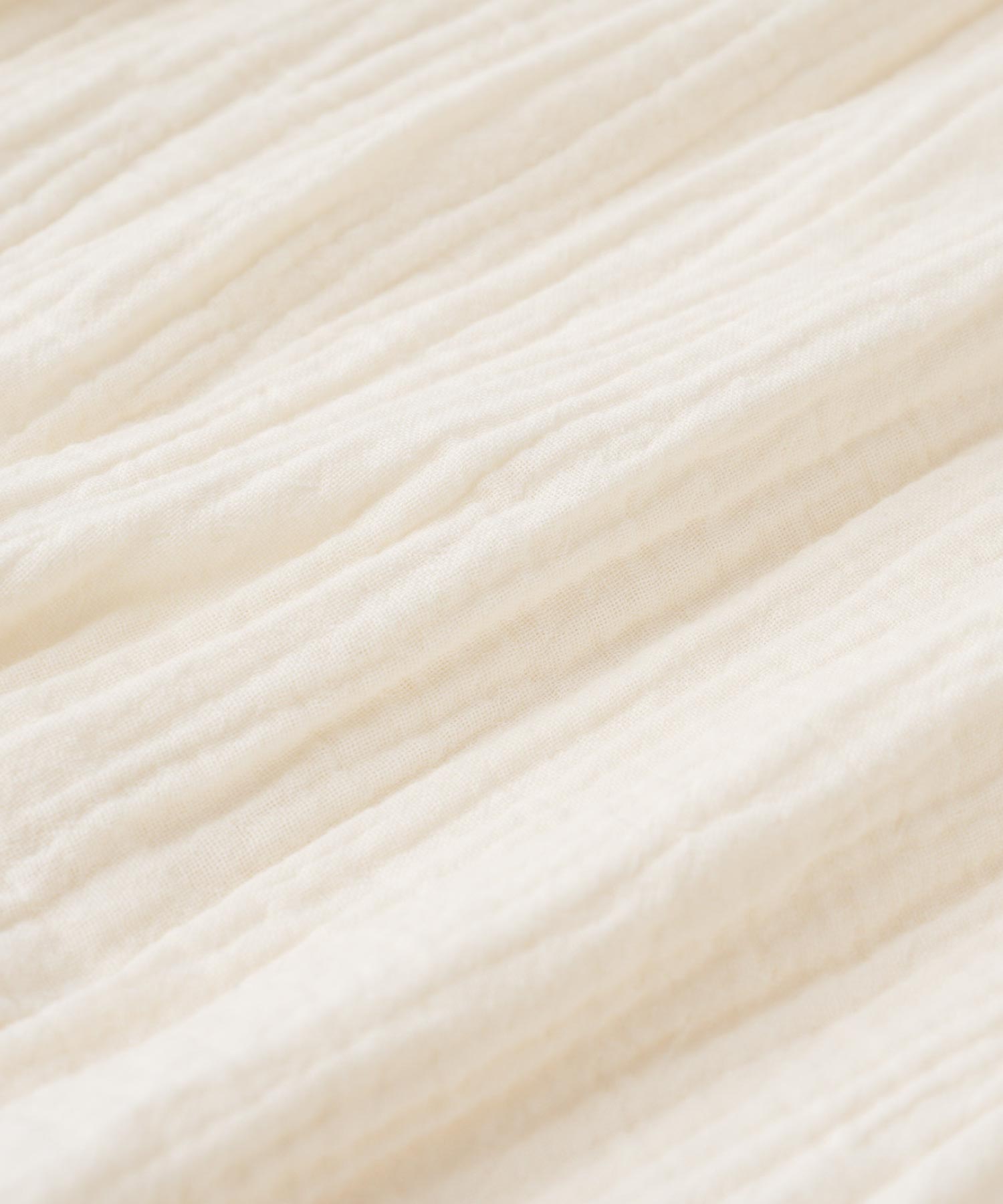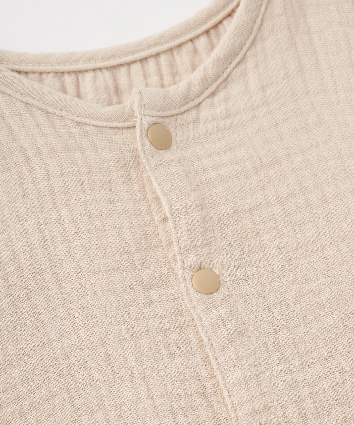 • A stylish double gauze coverall made from 100% cotton that gets softer and more textured with every wash. Its breathable fabric dries quickly even when sweaty, making it perfect for year-round use—spring, summer, fall, and winter.