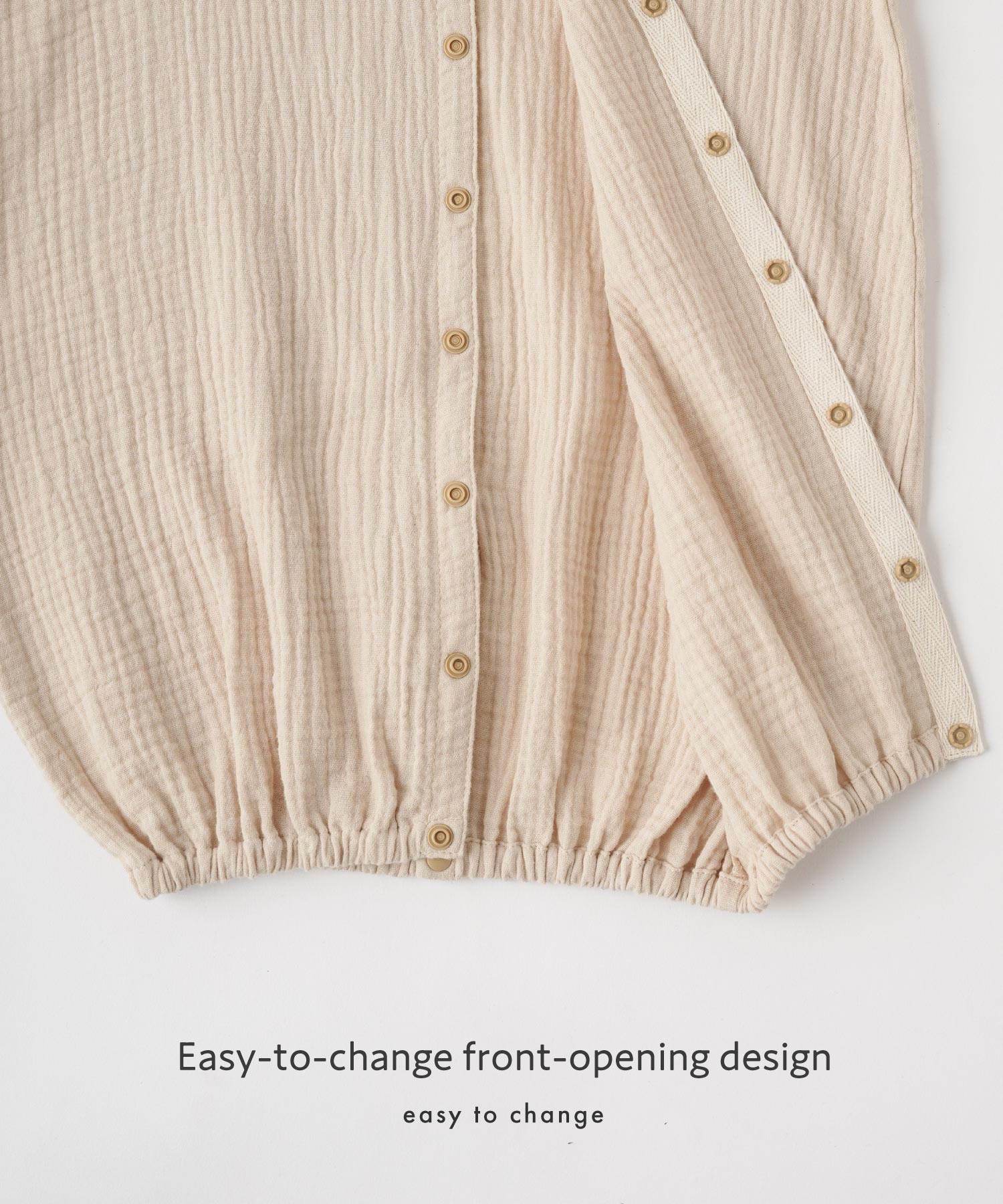 • Designed for easy use from day one, this front-opening style features snap buttons for quick, hassle-free dressing. The skirt-like hem allows babies to move freely, and simply rolling up the hem makes diaper changes super easy. Since newborns need frequent diaper and outfit changes, coveralls, dress styles, and this versatile two-way design are perfect choices. Ideal for babies from birth up to around 5 or 6 months who spend lots of time indoors.