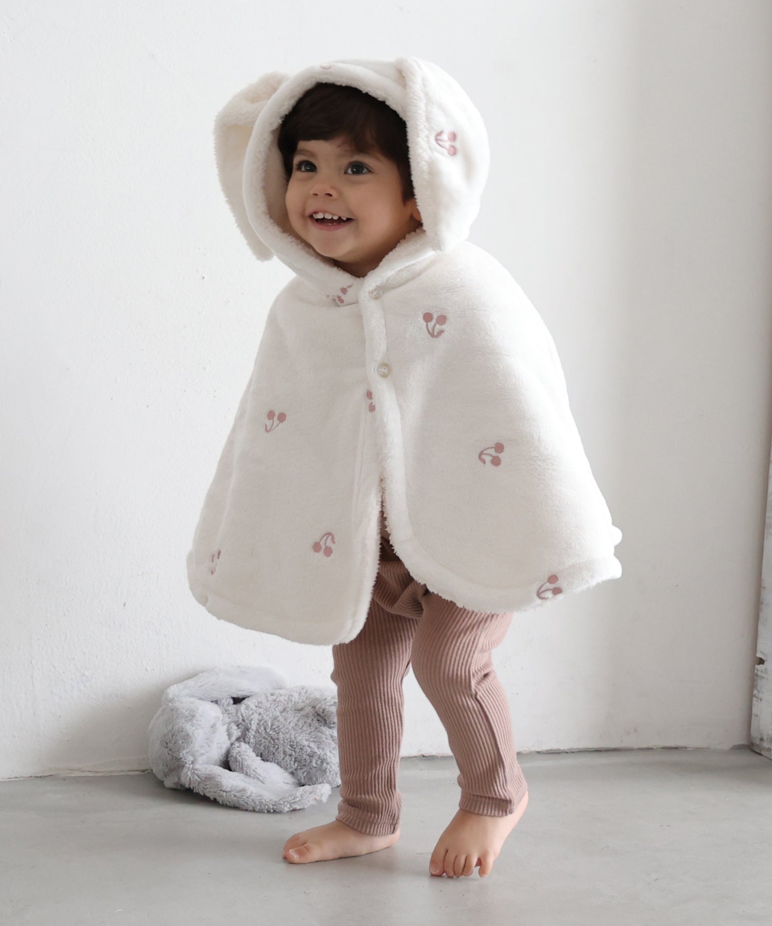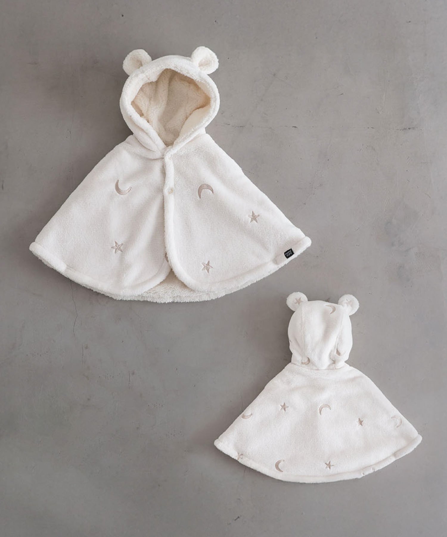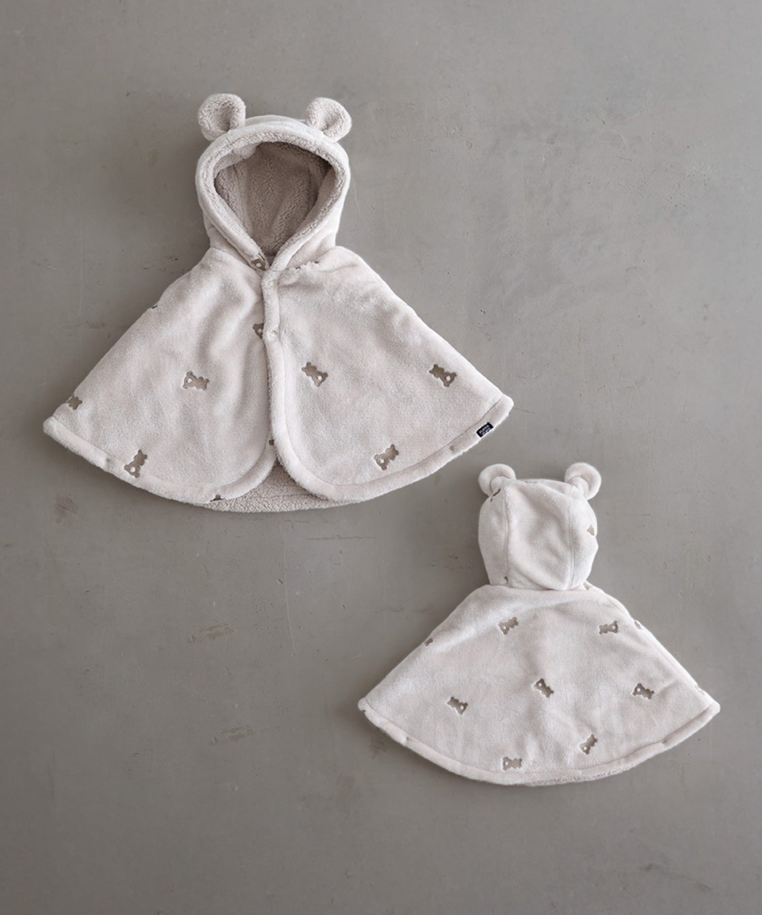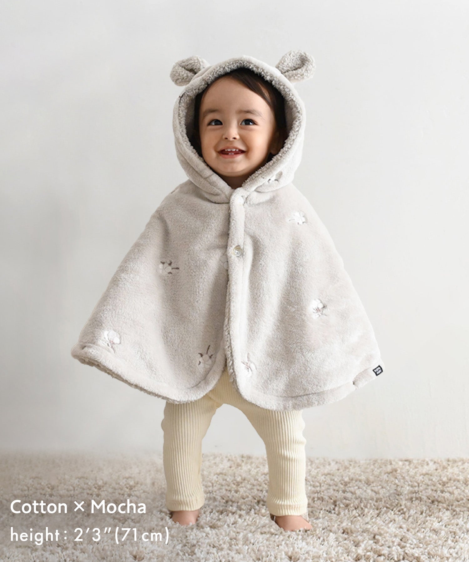 On cold days, it can be worn as a hood for extra warmth. With bear and rabbit ear designs, the irresistibly cute look extends even to the back view.
