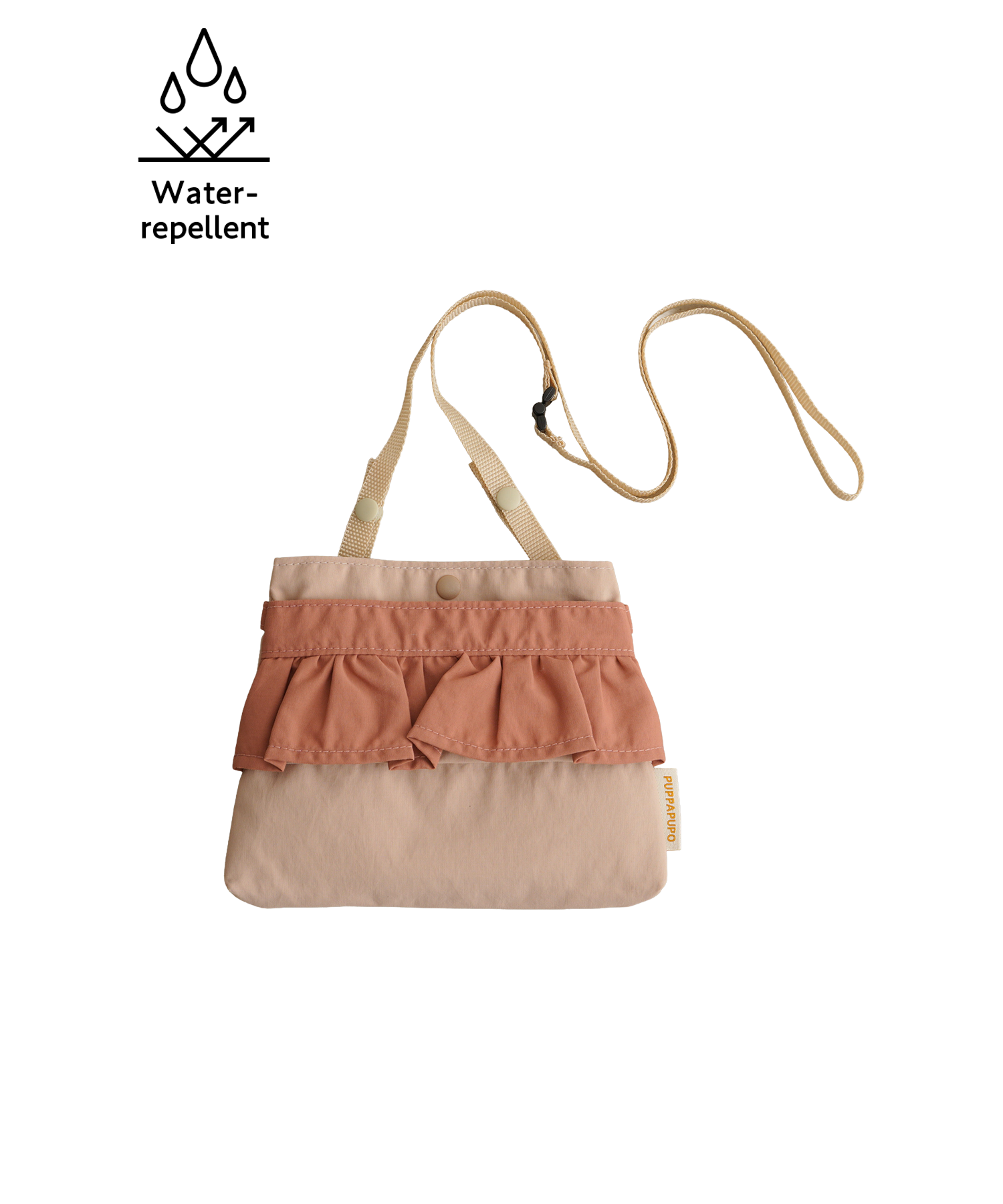 The outer nylon material is lightweight, durable, and water-repellent. Weighing less than approx. 1.8 oz (50g) (without frill design: approx. 1.8 oz (50g), with frill design: approx. 1.3 oz (35g)), it’s a lightweight type that’s easy to carry. The material is resistant to abrasion and stains, making it ideal for children to use.
