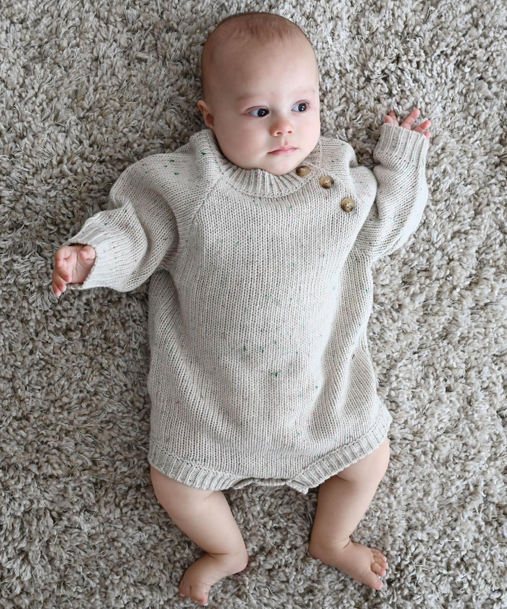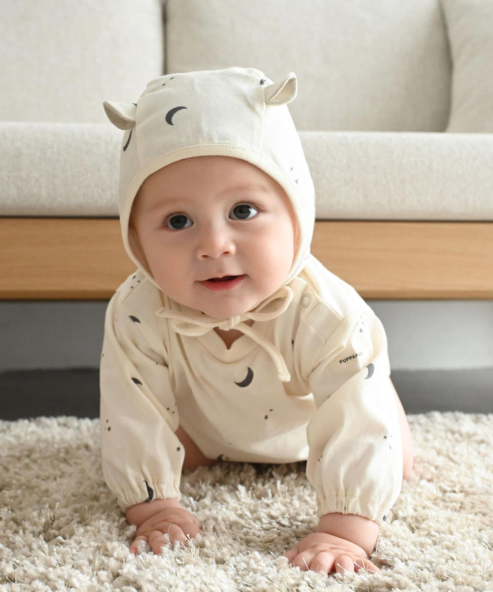 Long-Sleeve Romper with Bonnet (Waffle Knit)