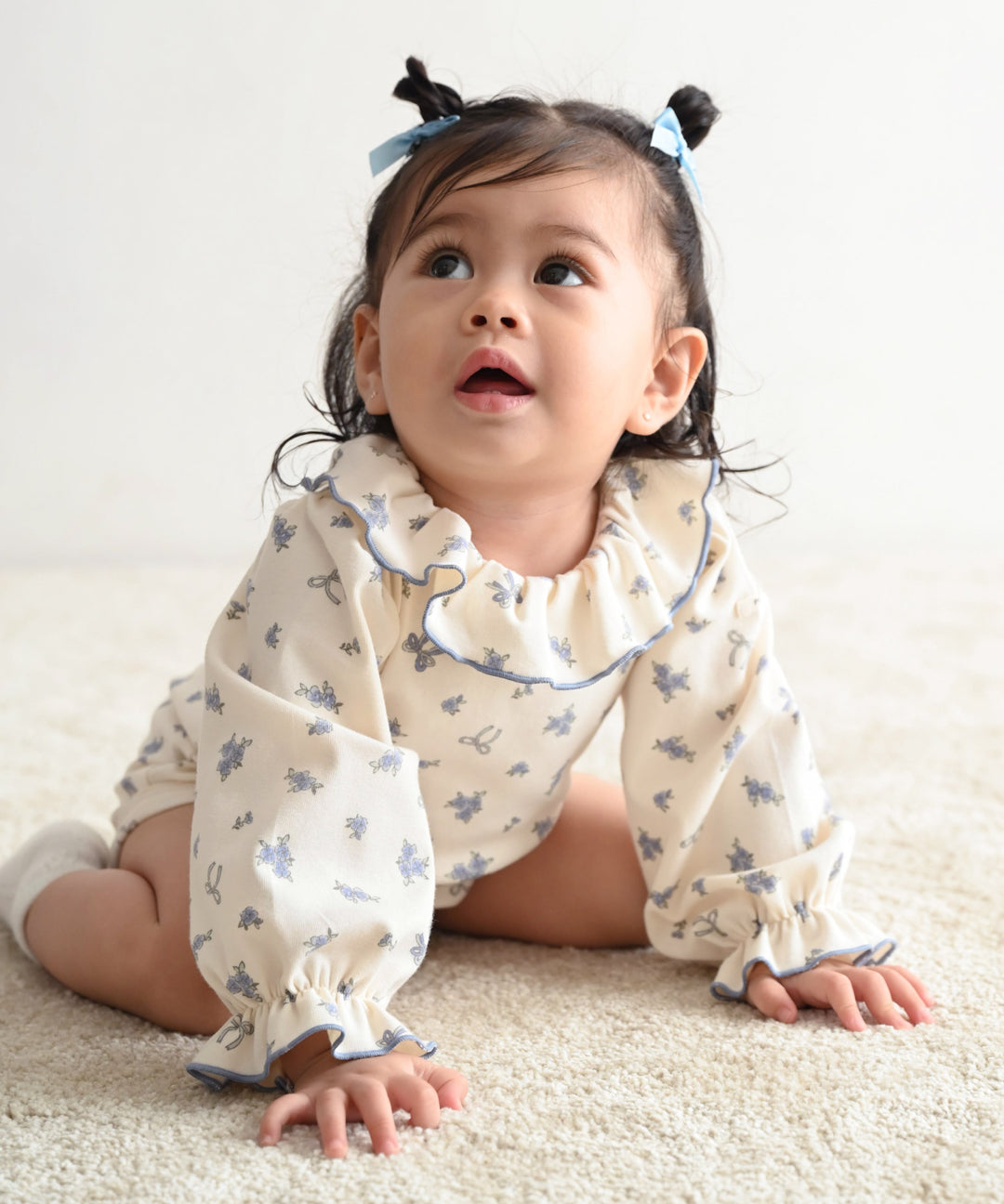 Shirred Puff-Sleeve Double Gauze Long-Sleeve Romper