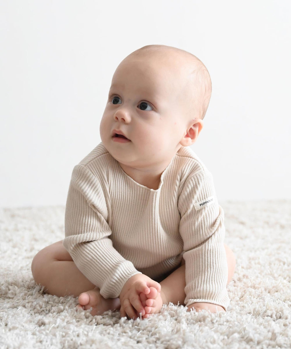 Shoulder-Frill Ribbed Long-Sleeve Romper