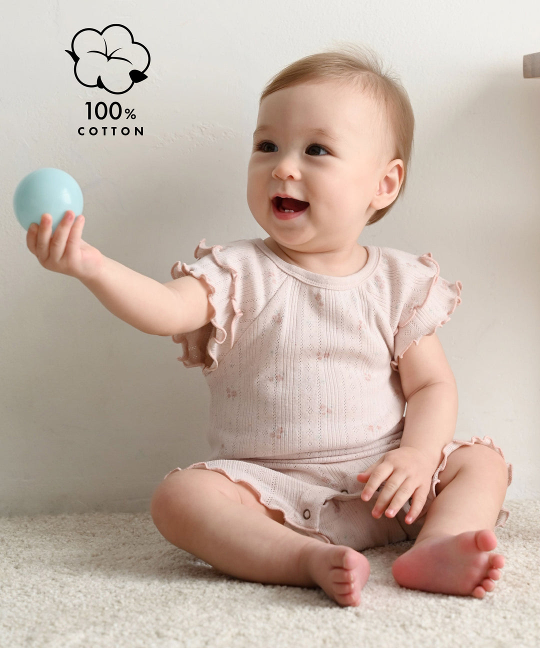 Shoulder-Frill Pointelle Ribbed Romper