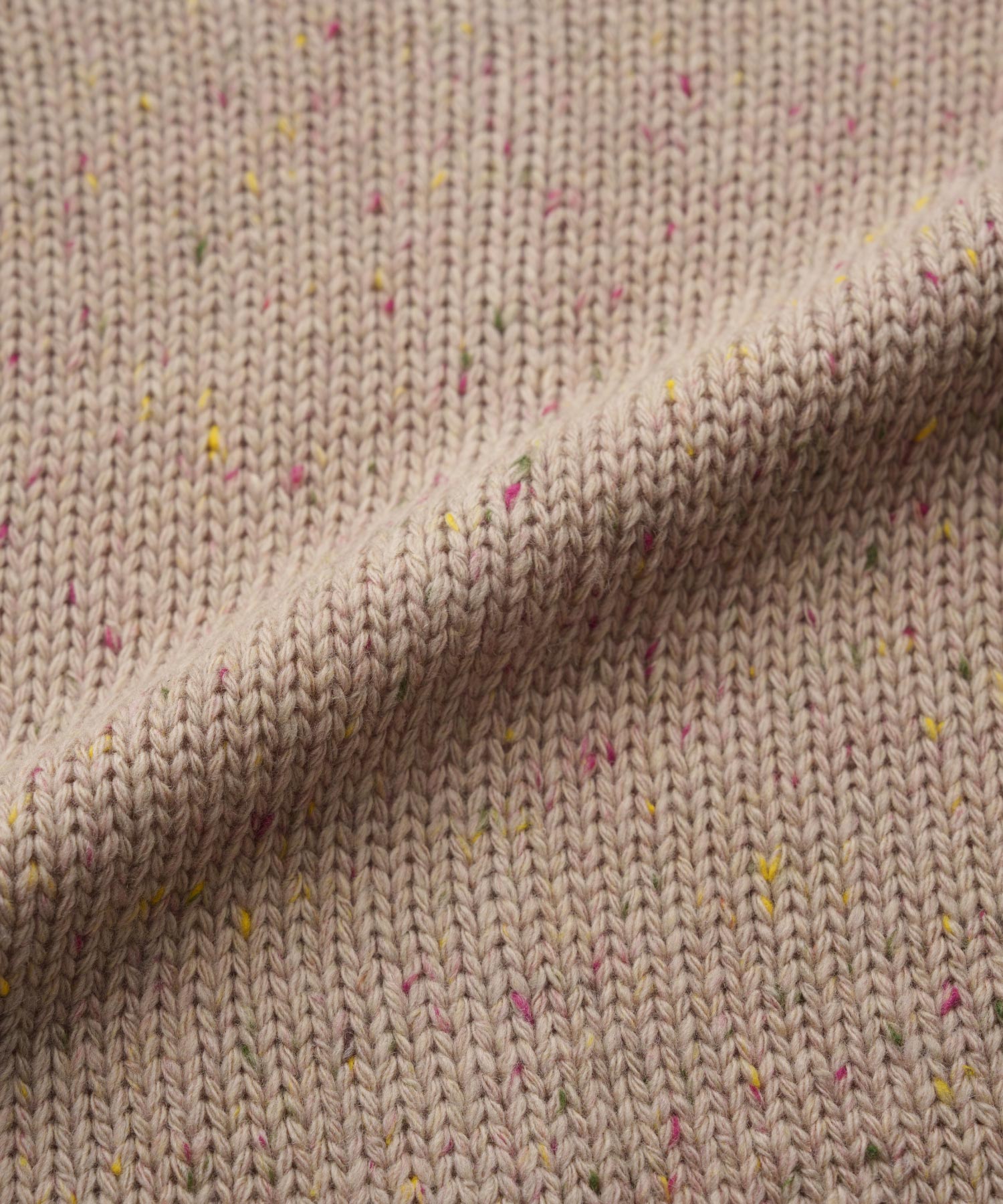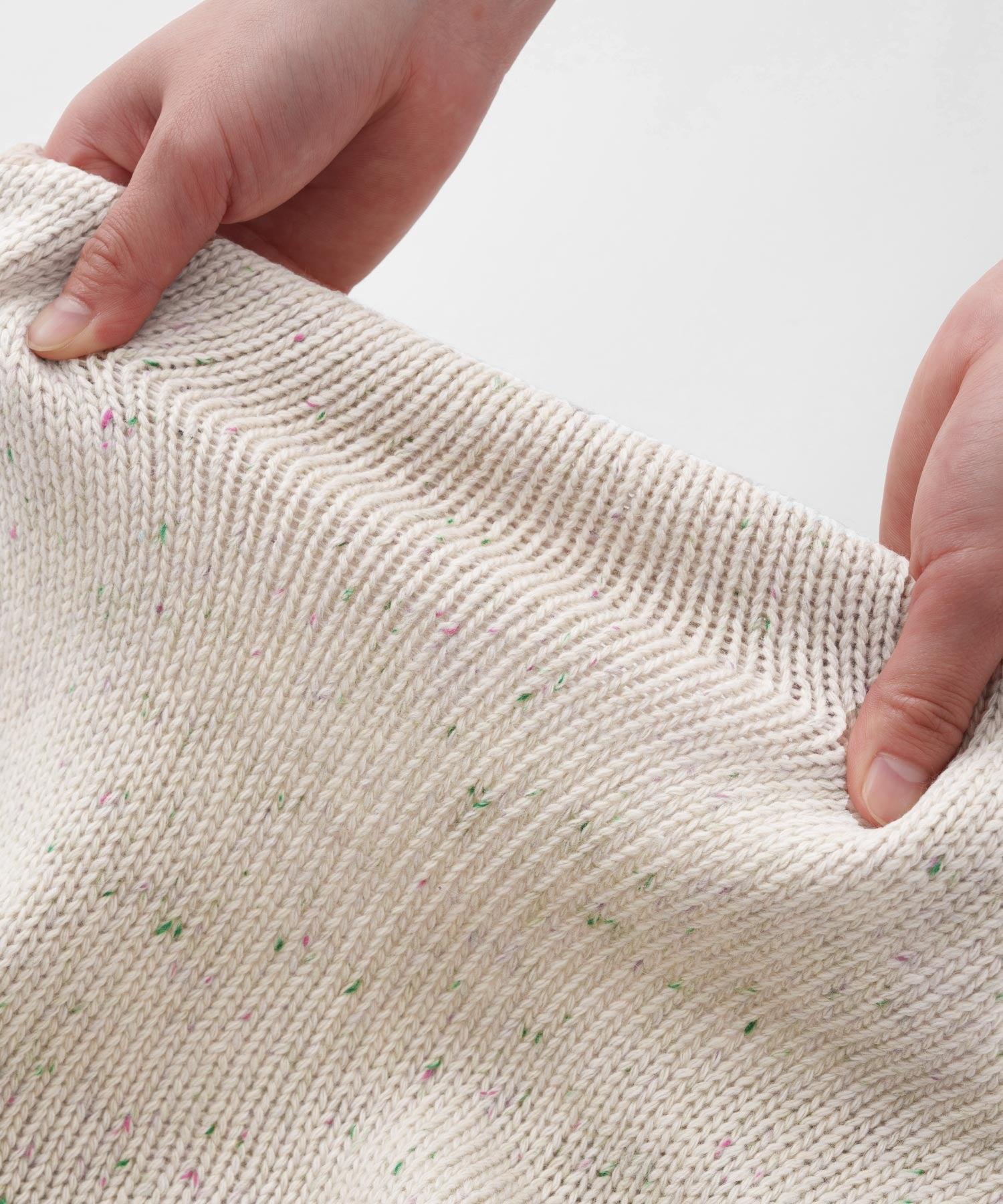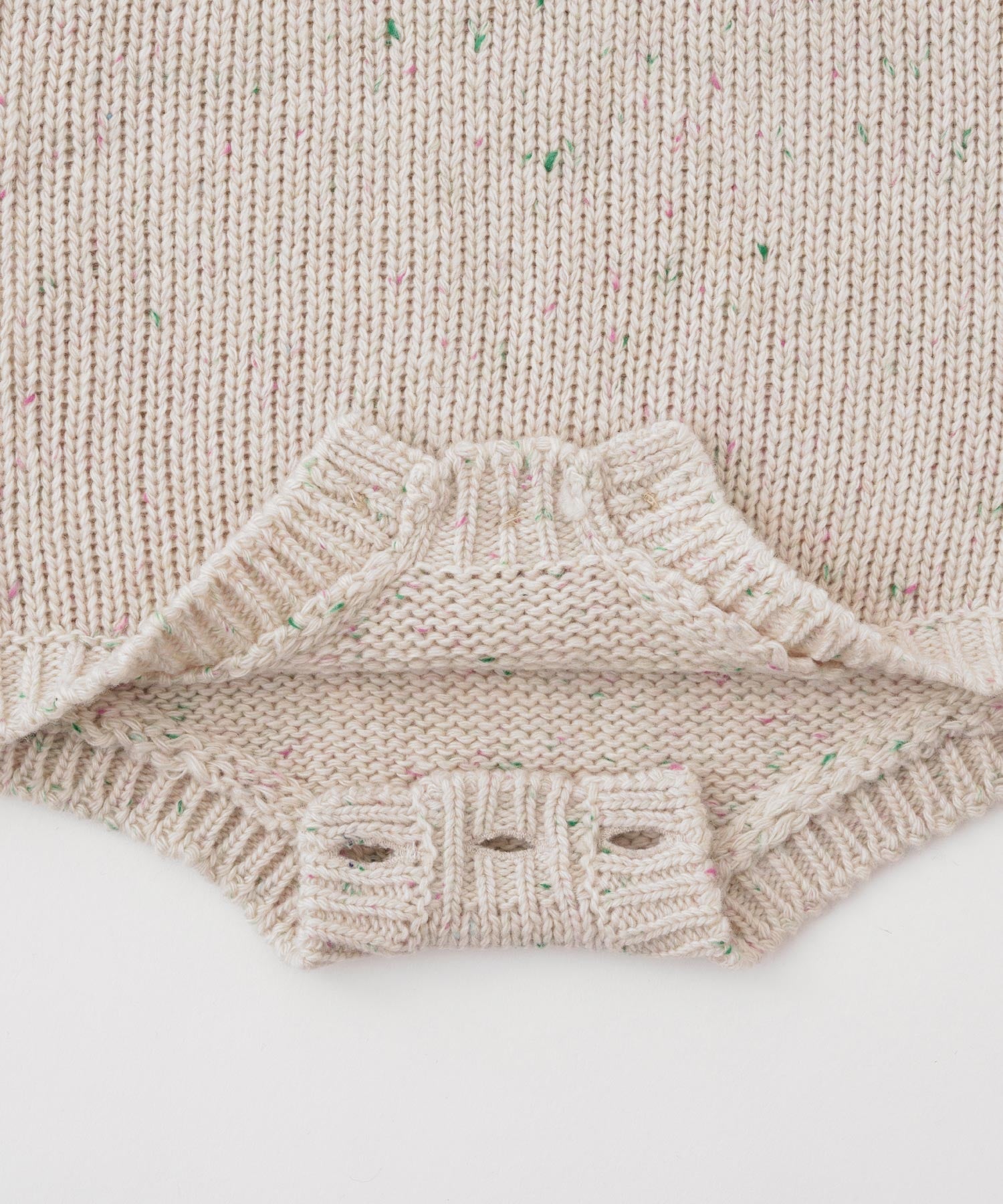 • This product features a design using color nep yarn. Due to the nature of the material, the nep fibers may gradually come loose with washing or friction during wear. In some cases, lint or pilling may transfer to layered garments. Please handle with care and avoid pulling on the fabric, as it is delicate.