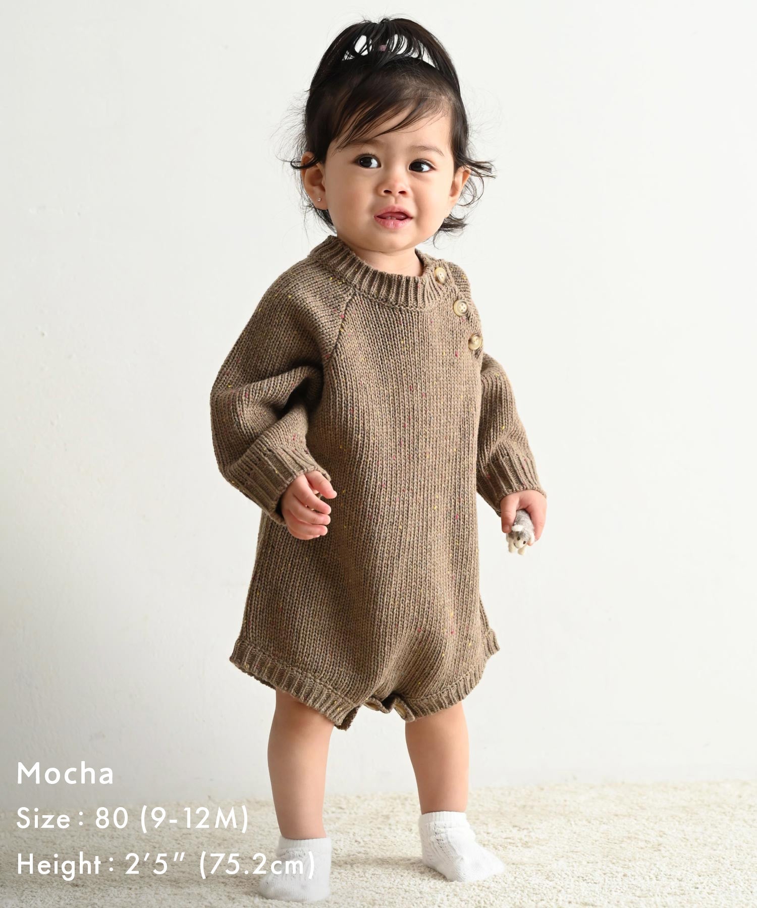 • Designed with a focus on ease of movement and fit, this knit features raglan sleeves. Thoughtfully made for babies, the design allows free shoulder and arm movement while minimizing the appearance of broad shoulders, creating a clean, baby-friendly silhouette that looks neat and streamlined.
