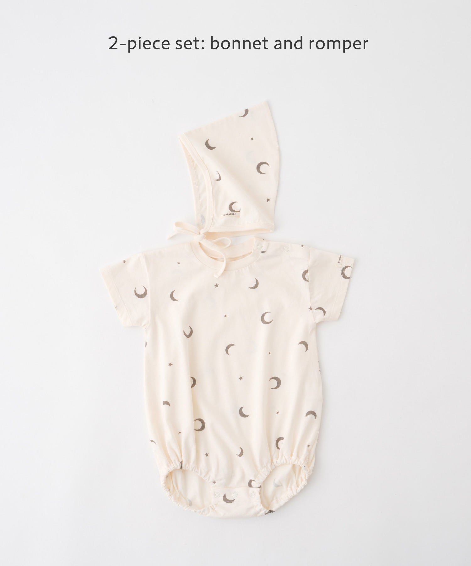 • This romper comes as a 2-piece set with a matching bonnet in the same fabric and design. The bonnet is cute for outings or at-home photos and fully covers the ears, providing a little extra protection against cool air.