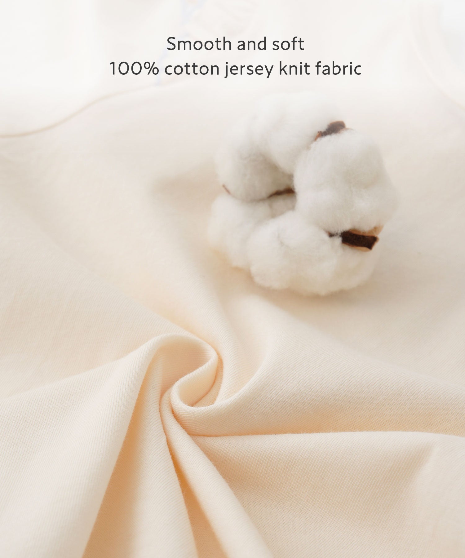 • Both kids and moms will love the smooth, soft feel of 100% cotton jersey knit. With just the right thickness for baby and kids' clothing, it's perfect for long-season wear.