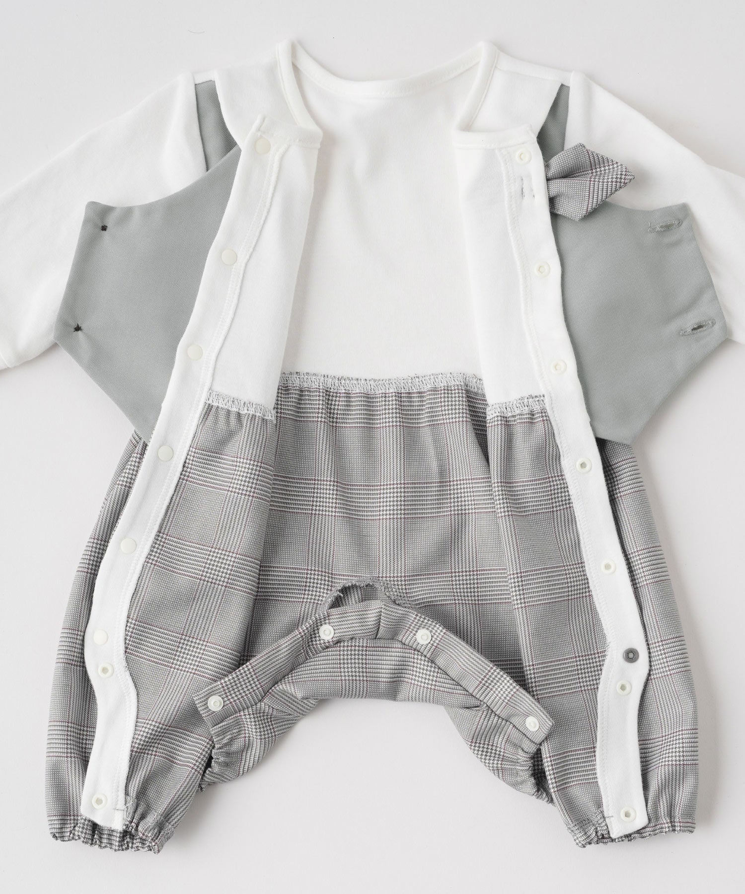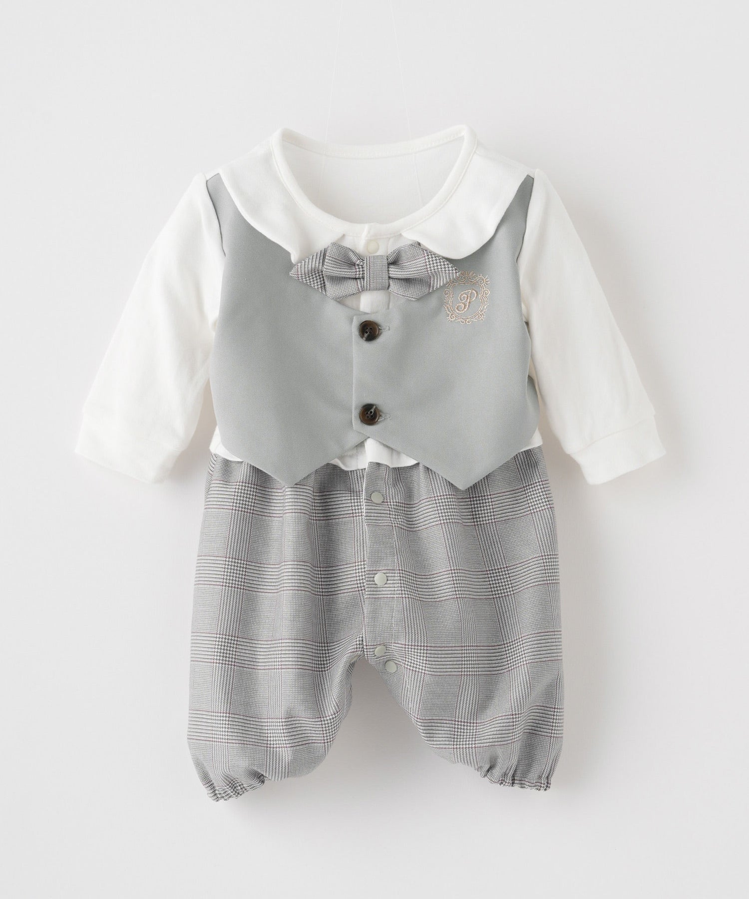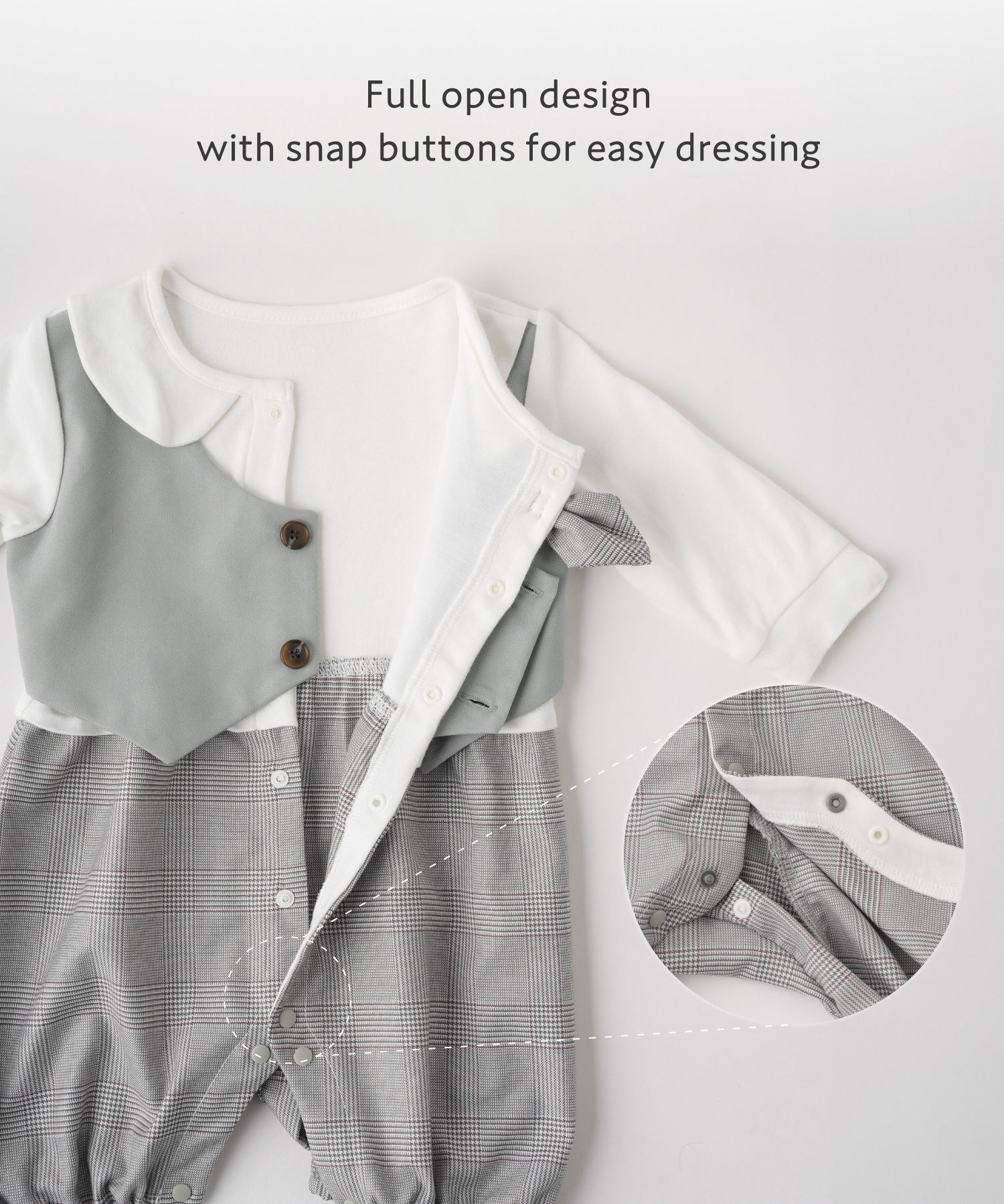 • A vest-style layered romper that creates a polished formal look with just one piece. Perfect for babies’ special occasions such as entrance ceremonies, 100-day celebrations, or half-birthdays. The romper design also makes diaper changes quick and easy.