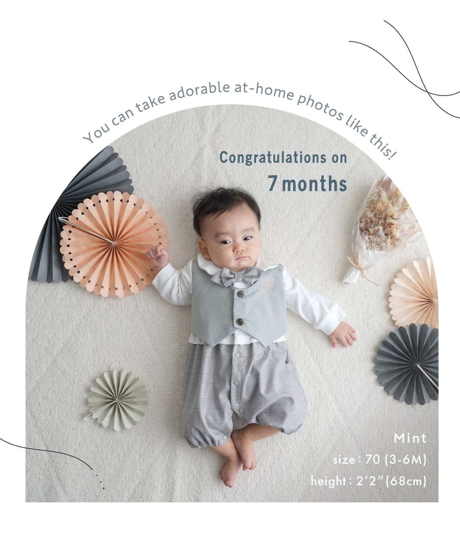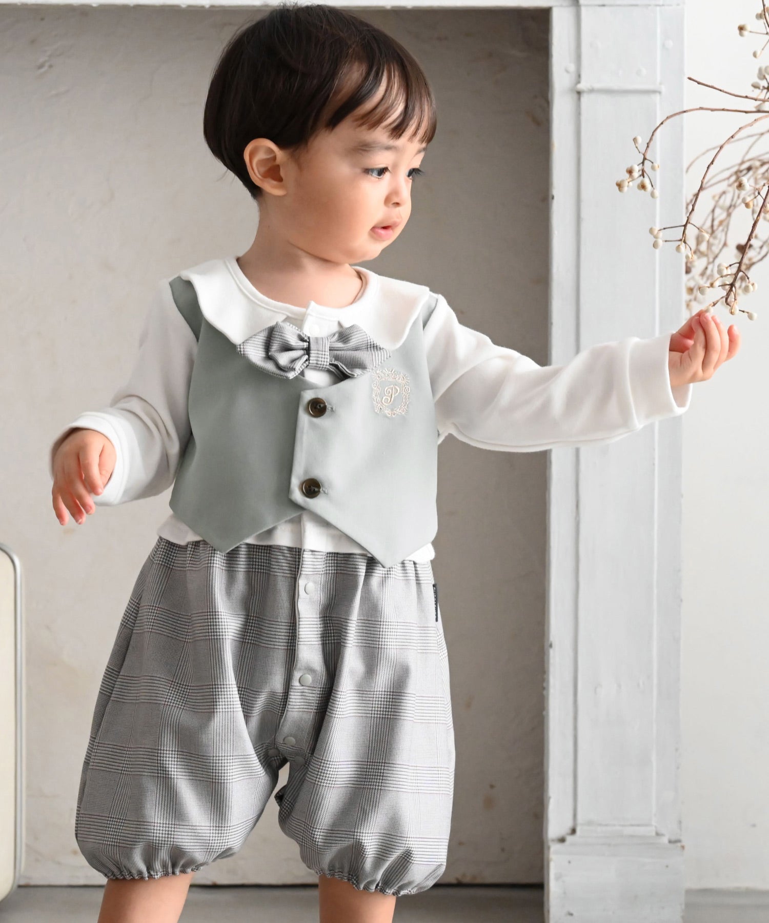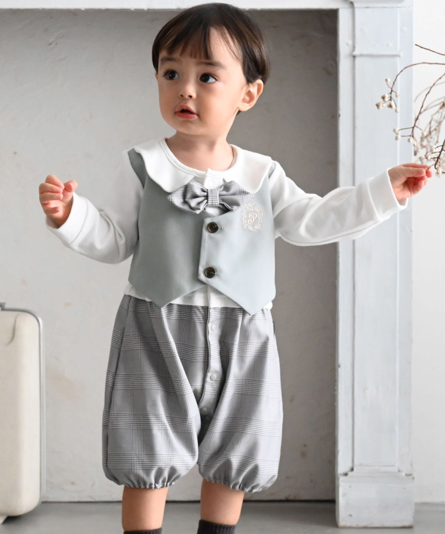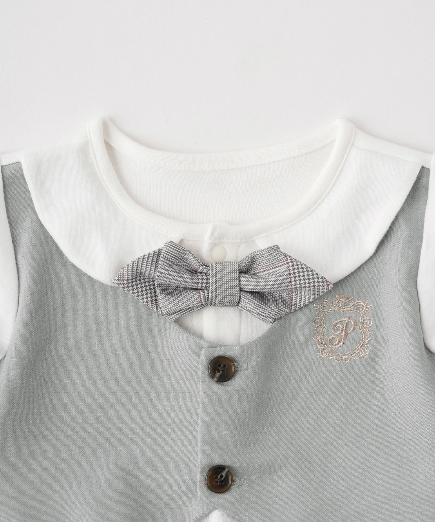 • A vest-style layered romper that creates a polished formal look with just one piece. Perfect for babies’ special occasions such as entrance ceremonies, 100-day celebrations, or half-birthdays. The romper design also makes diaper changes quick and easy.