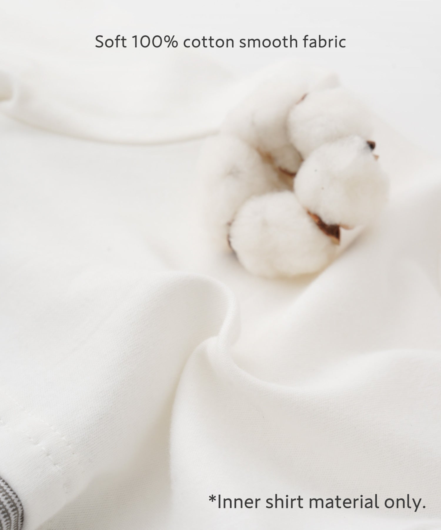 • The upper shirt part, which touches the skin, is made from soft 100% cotton smooth fabric. Thoughtful details like these reflect the care that goes into baby clothing.
