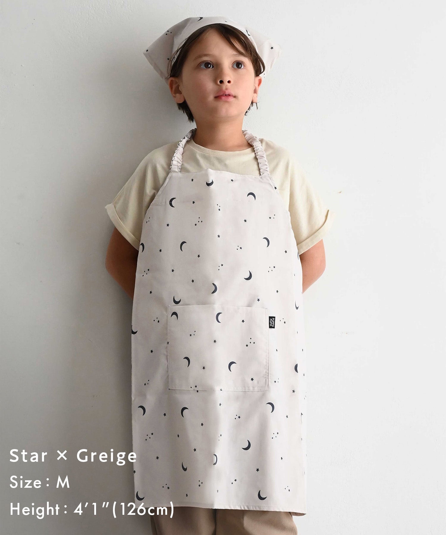 The apron features gentle elastic at the neck and waist for a comfortable fit without tightness. The triangle head scarf also uses elastic, allowing it to be quickly slipped on. Just like a headband, it can be put on over the head, making it easy for children to wear and remove by themselves. *Please note: the elastic cannot be replaced.
