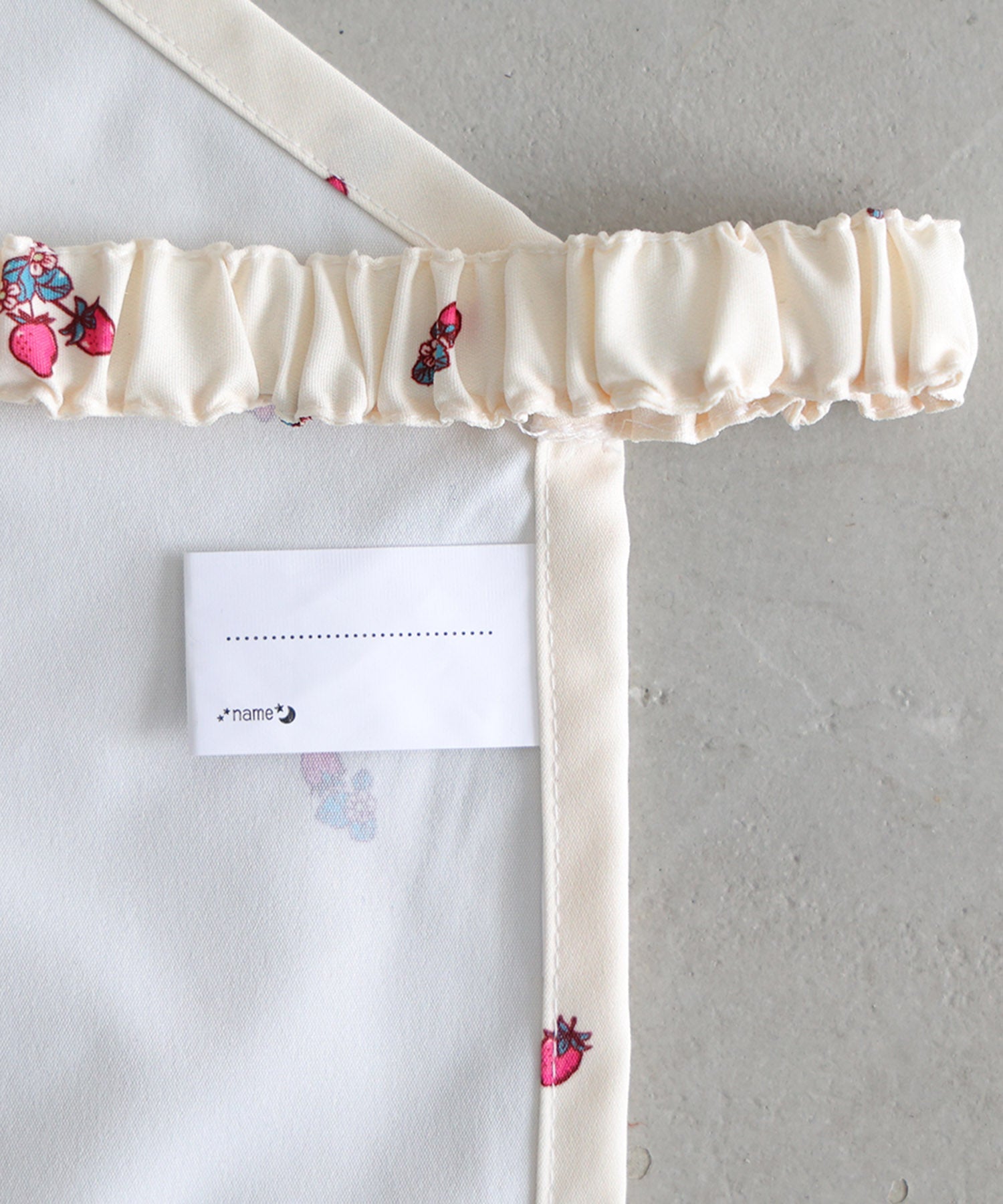 A must-have for your child’s belongings! Each item—the apron, triangle head scarf, and dedicated bag—comes with a name tag.