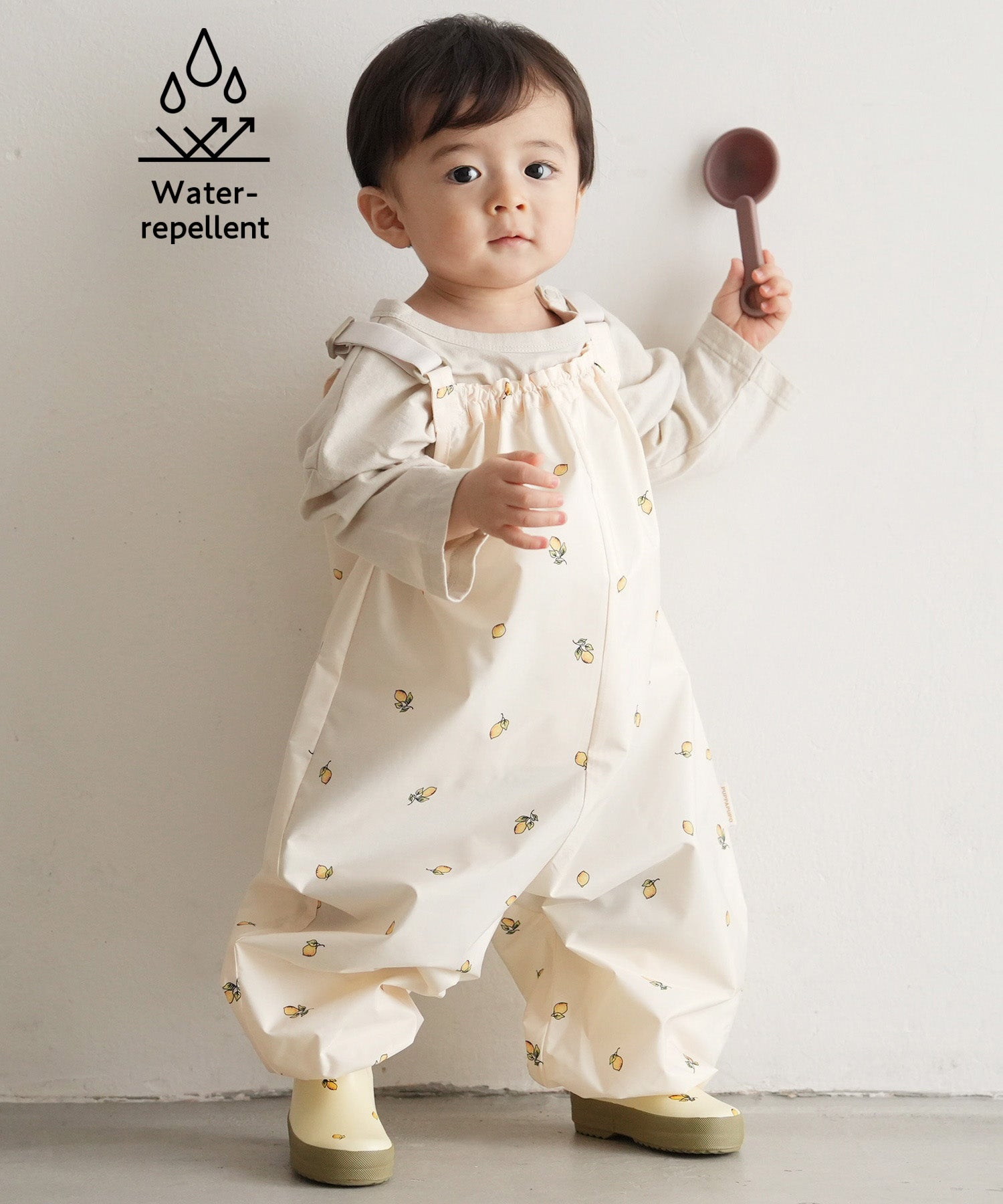 Baby & kids rain dungarees is perfect for messy fun—whether it’s sandbox time, practicing first steps in the yard or park, blowing bubbles, water play, or clay crafting. With water-repellent fabric, it’s great even on rainy days. Features a sleeveless, all-in-one romper design.