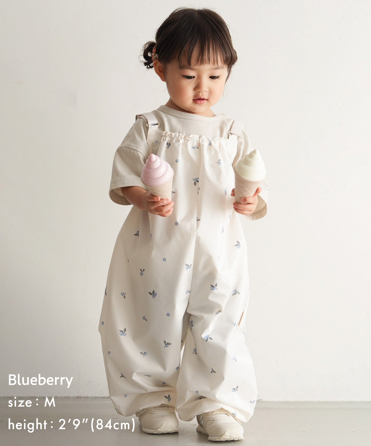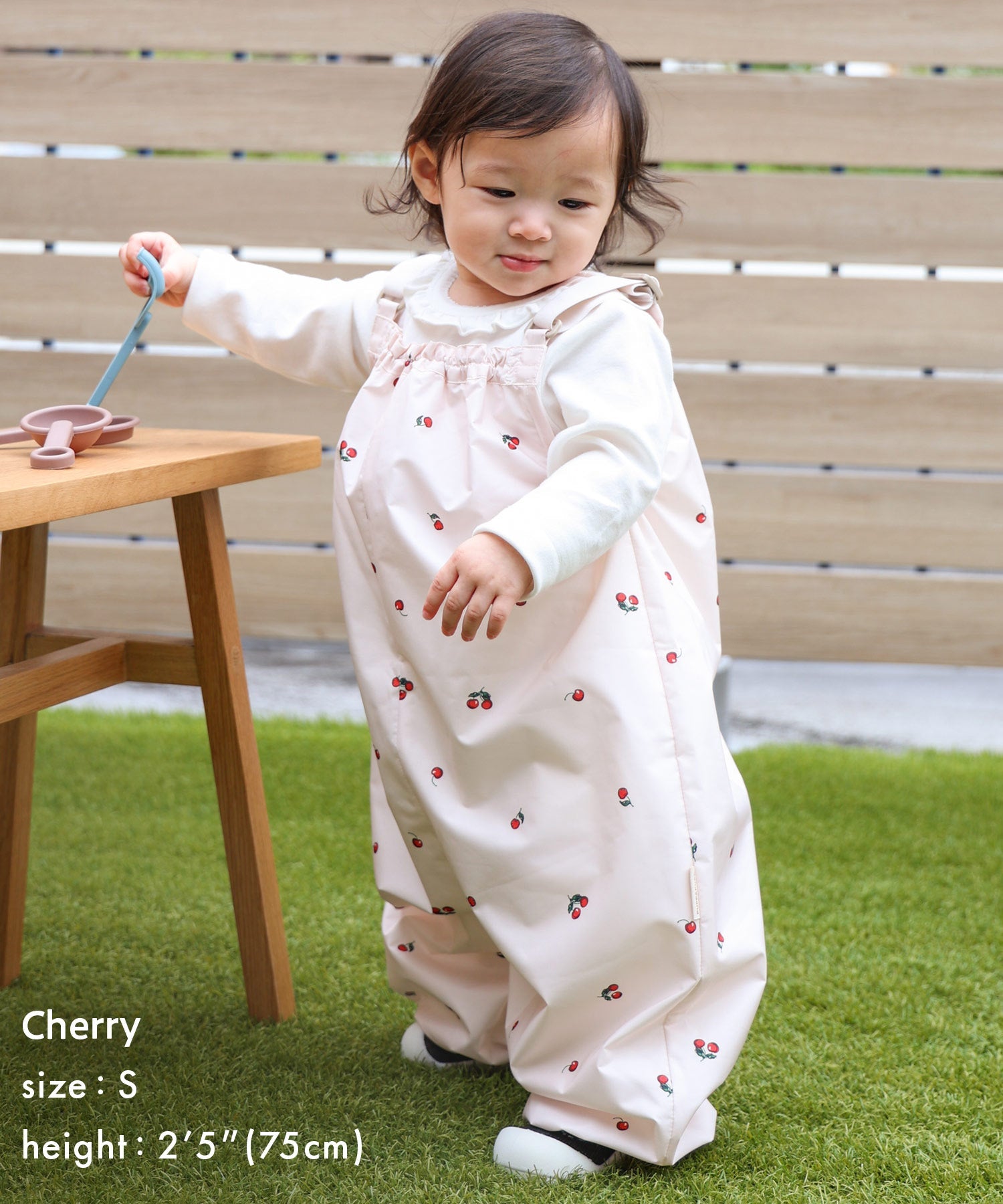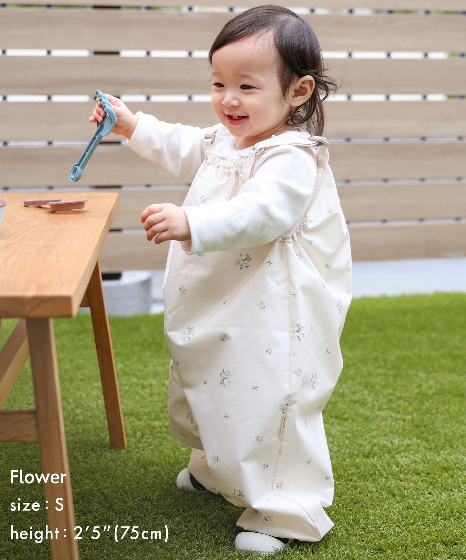 Available in 2 sizes to suit your child’s growth. [Reference clothing sizes] S: 70 (3-6M) to 80 (9-12M) / M: 90 (18-24M) to 100 (3T)