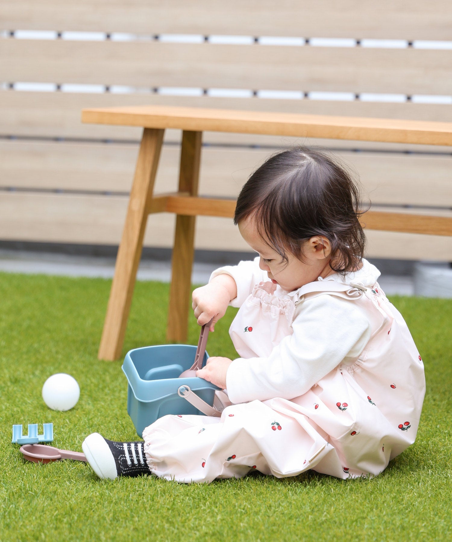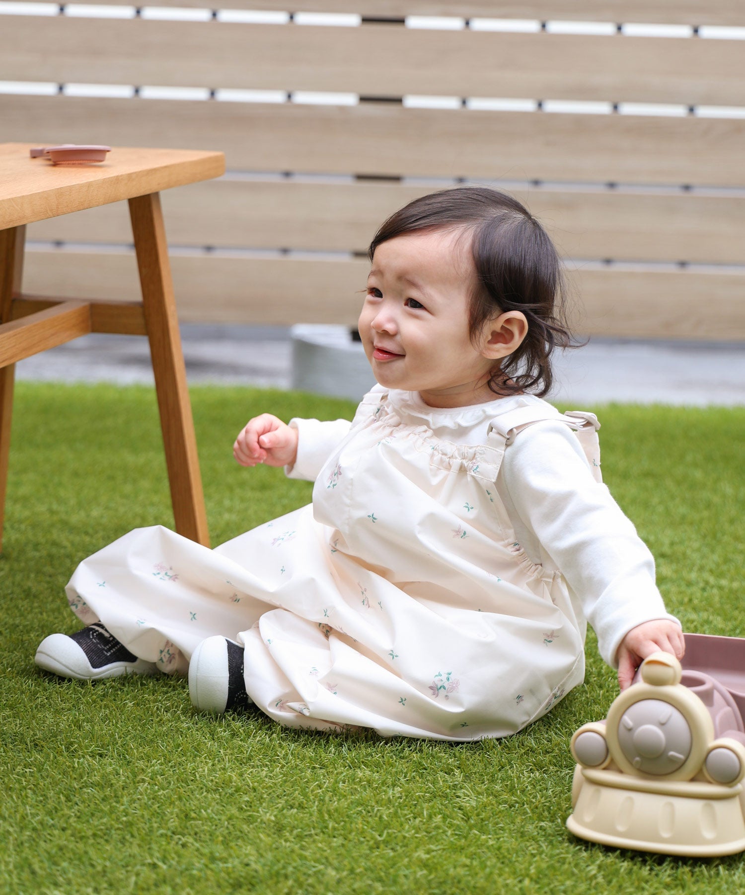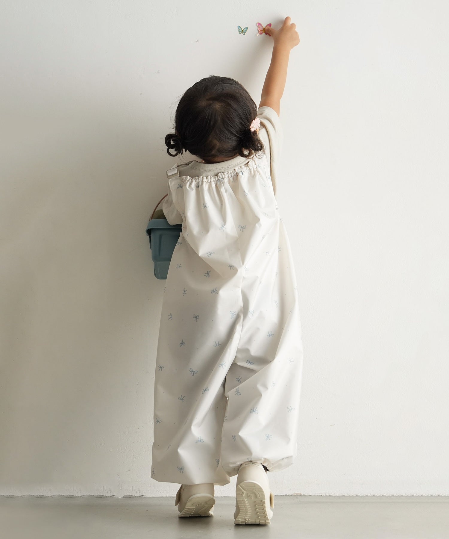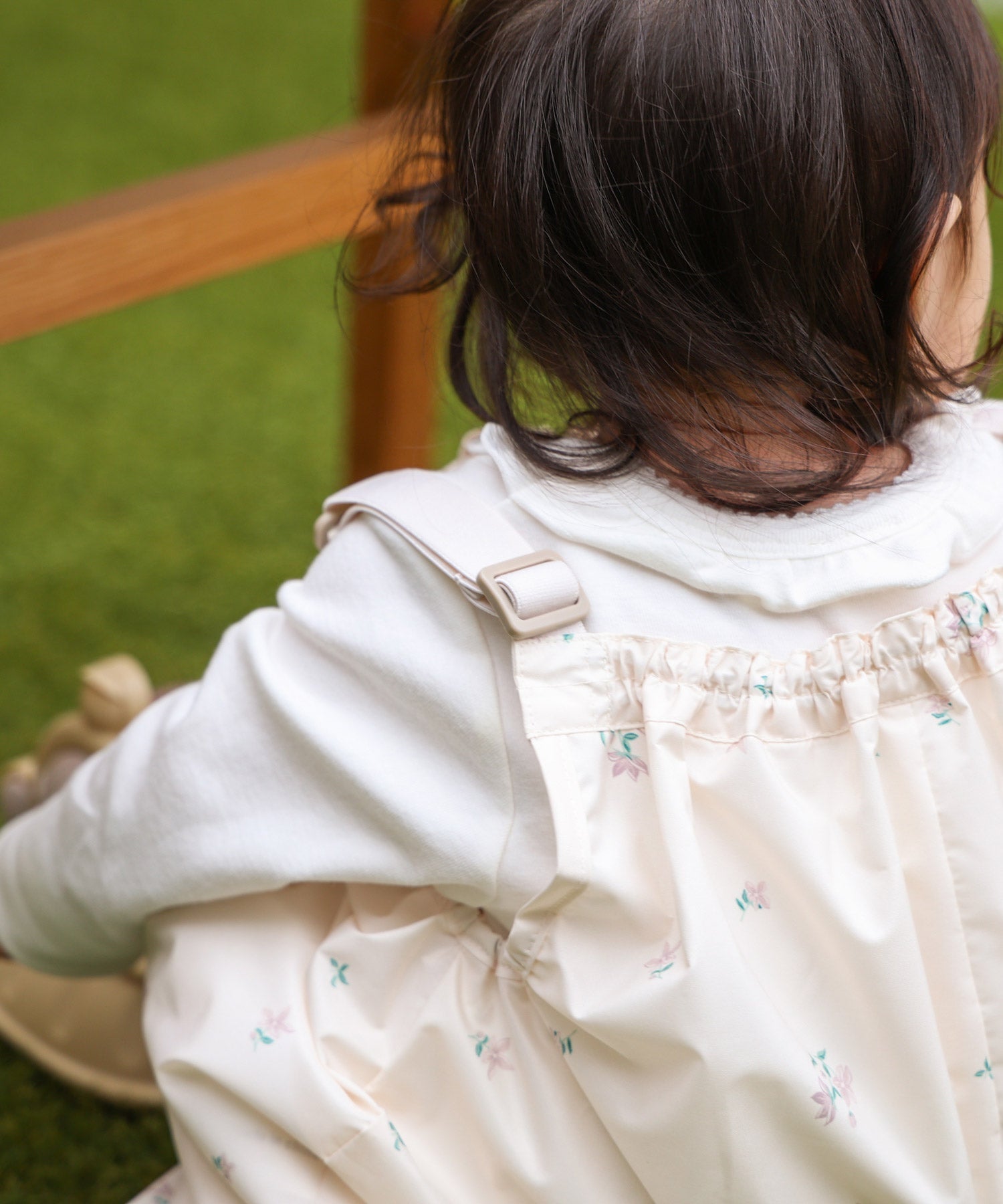 The shoulder straps, chest, hem, and sides feature elastic, making it easy for little ones to put on and take off. The elastic hem is designed to help prevent dragging, and the relaxed fit gives kids plenty of room to move—whether they’re sitting, standing, or running around. It’s thoughtfully designed with babies in mind, using no zippers or plastic snaps so it won’t hurt even if they fall or bump against it.