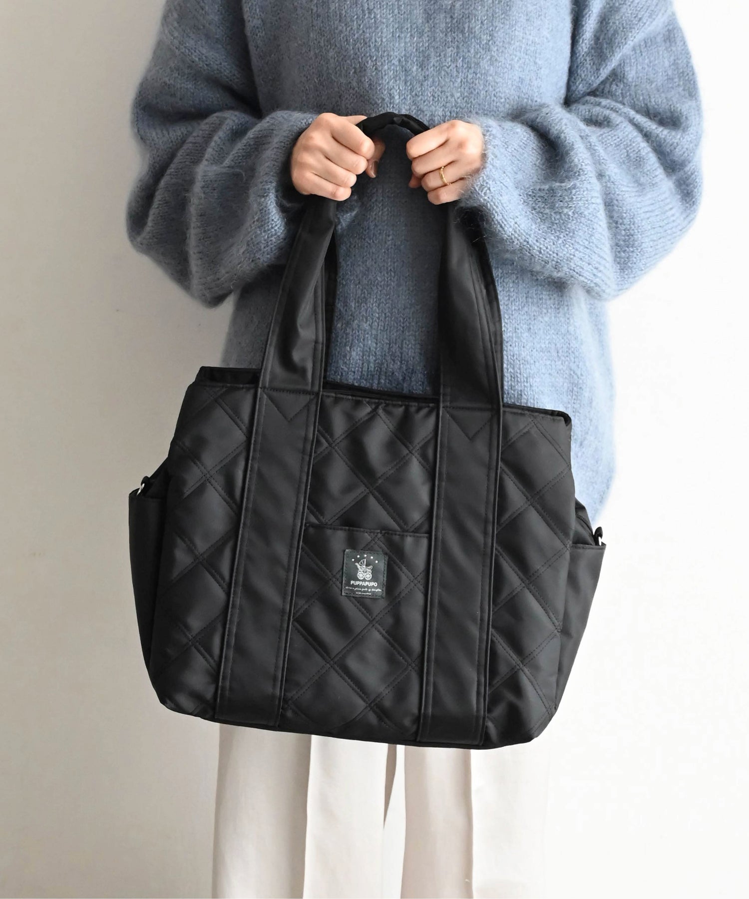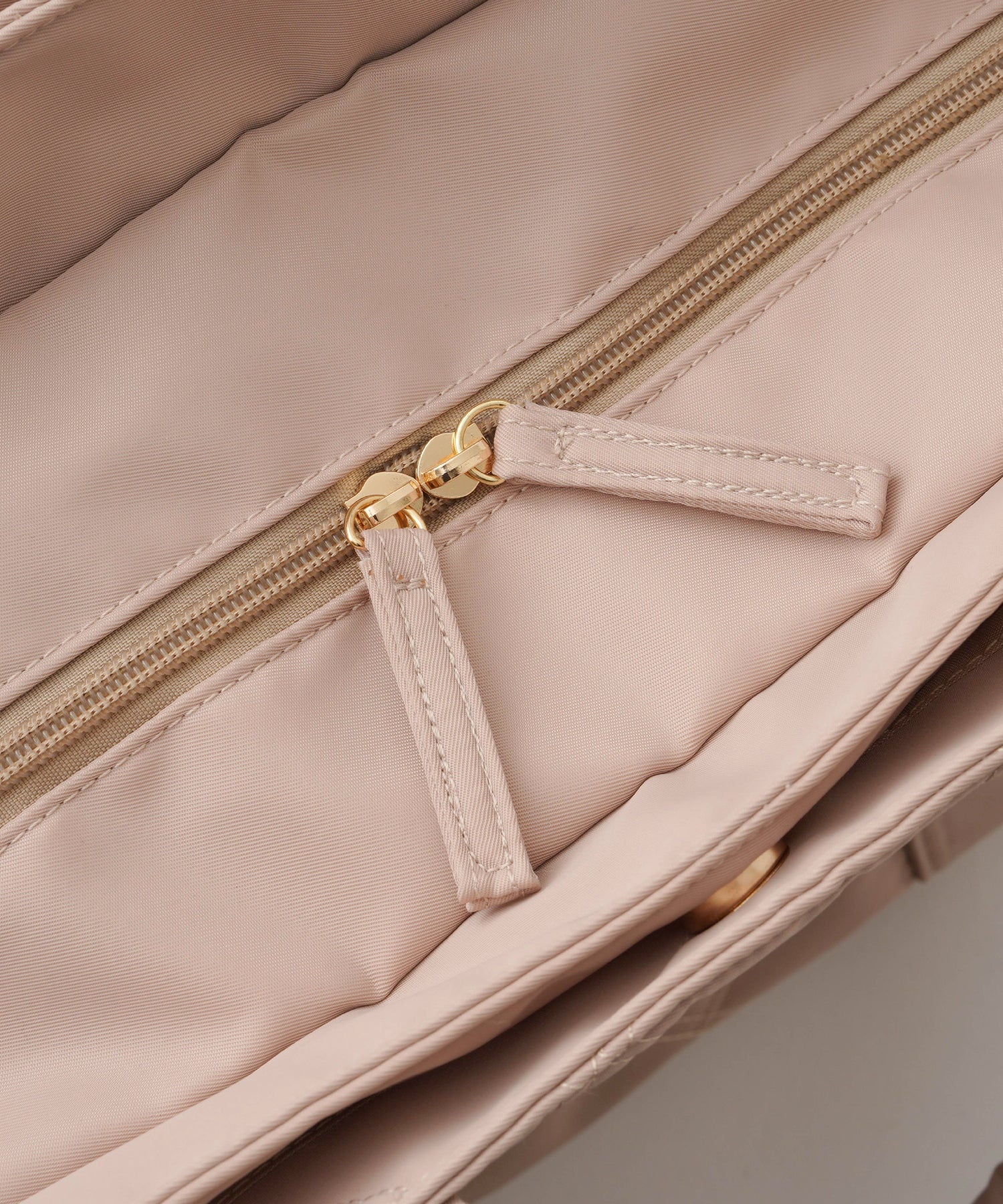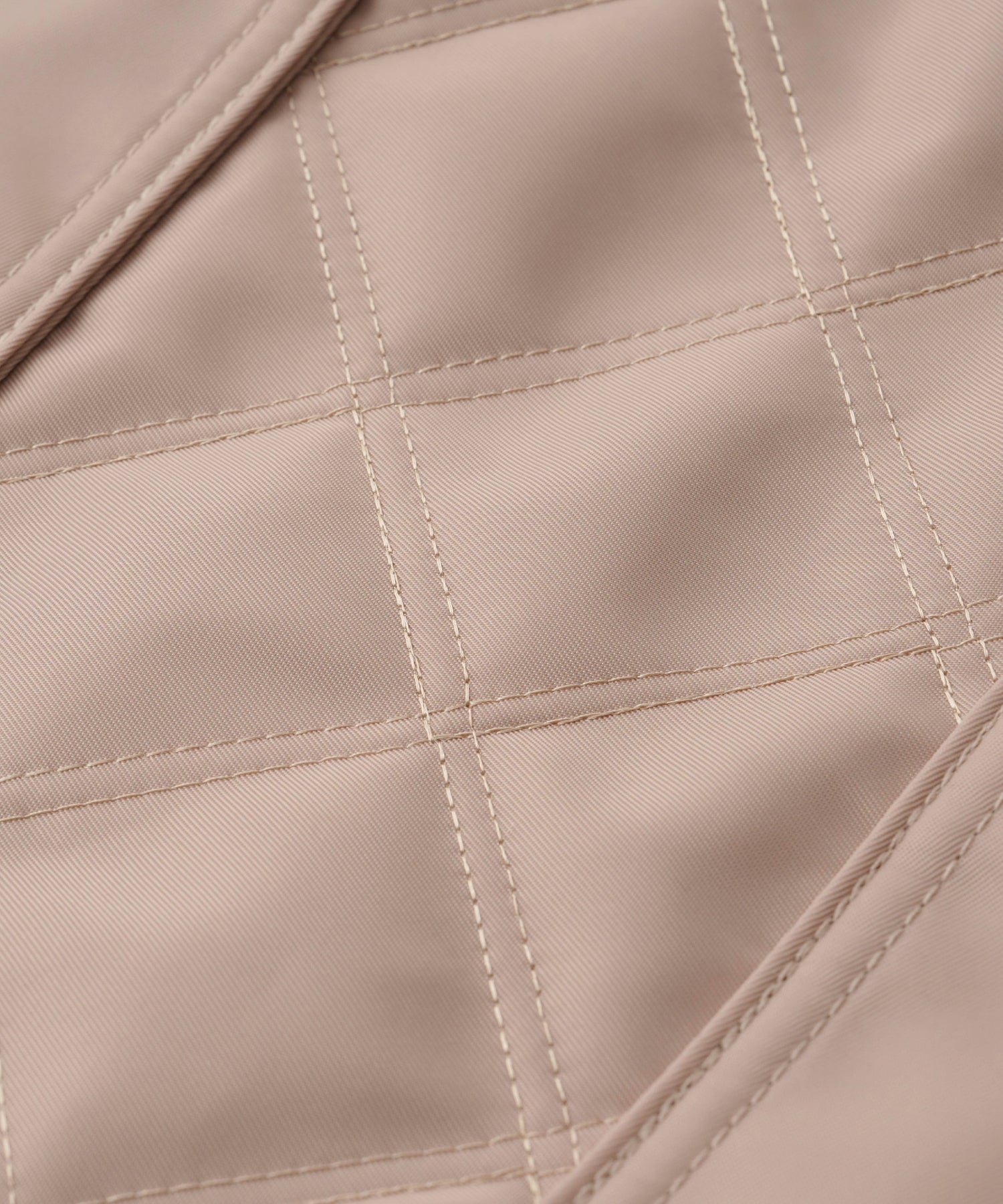 The outer fabric is a durable, high-quality polyester twill. Its subtle diamond-quilted texture gives a chic, sophisticated look that feels premium and stylish. The water-repellent finish, essential for daily use, repels light rain and minor mud splashes, making cleaning as simple as a quick wipe. *Please note: the water-repellent finish is not fully waterproof. With repeated use or as its effectiveness diminishes, we recommend applying a commercially available waterproof spray.