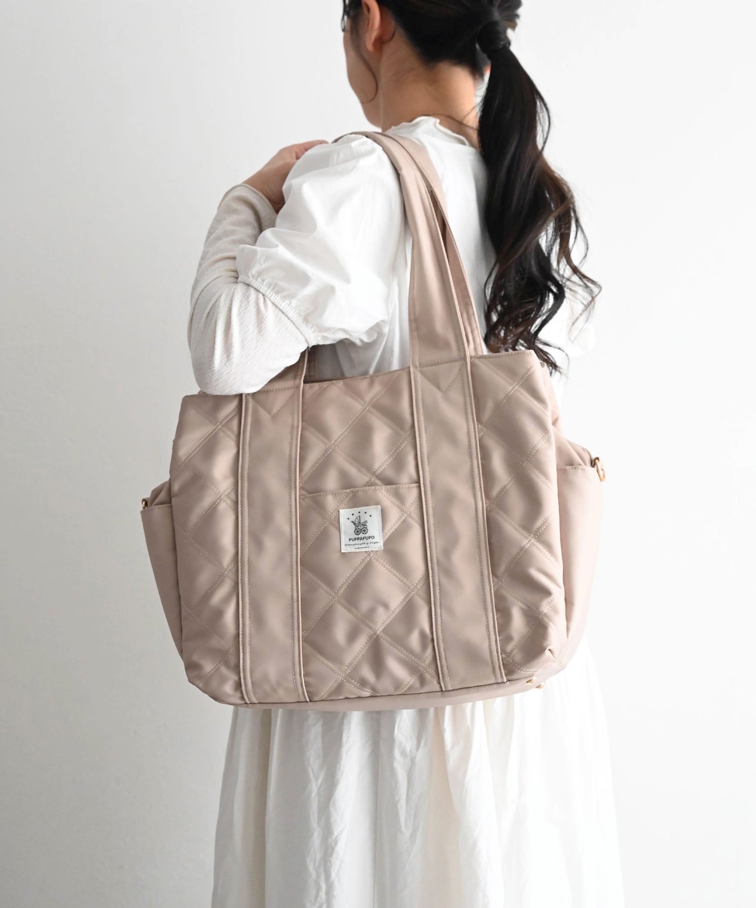 The flexible 2-way design lets you use it as a shoulder bag—keeping your hands free even while holding your baby—or as a grab-and-go tote for quick outings. The handles have just the right width to hang on stroller hooks. The detachable wide shoulder strap features a cushioned pad to help reduce shoulder strain.