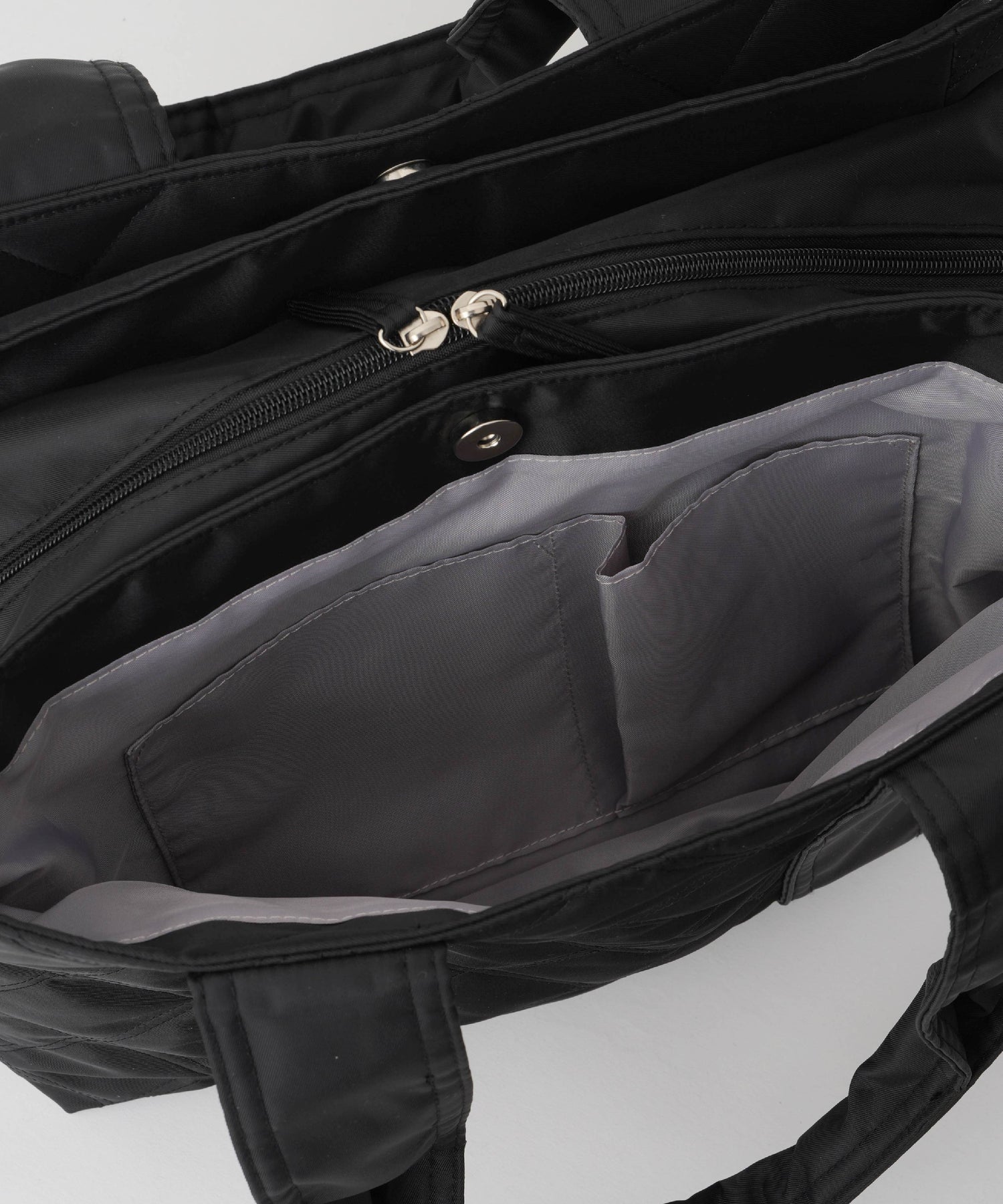The central main pocket features a long double-zipper handle for quick one-handed opening and closing, while the front and back pockets use magnetic buttons. The wide, easy-to-open design is one of the advantages of the tote style.