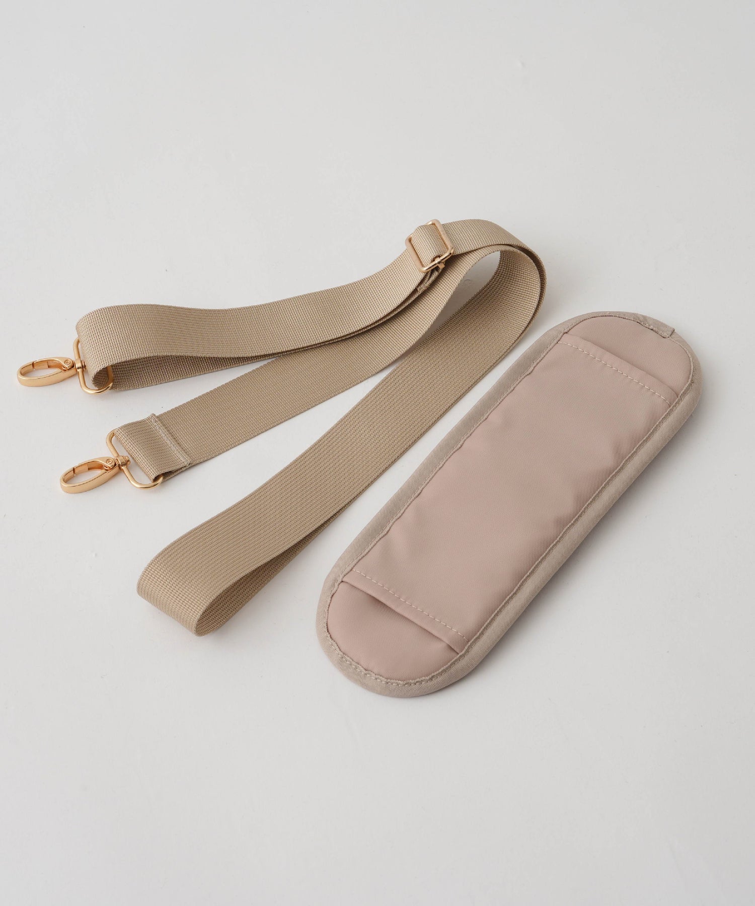 The shoulder strap can be detached when not in use. Its length is adjustable, and the wide, soft design makes it comfortable on the shoulder. It also comes with a removable padded shoulder pad to help reduce strain.