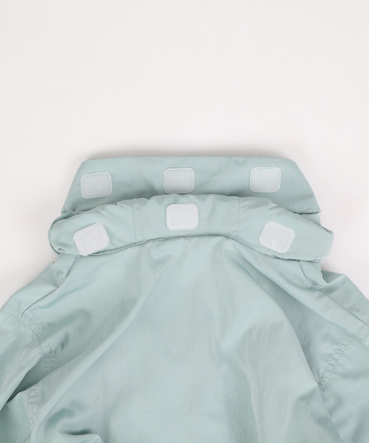 • Comes with a large hood perfect for keeping warm. For daycare or small children, considering safety, when the hood is not needed, it can be quickly rolled up and stored in the collar when not needed, instantly transforming the jacket into a hoodless nylon jacket. *Patterned versions use 100% polyester.