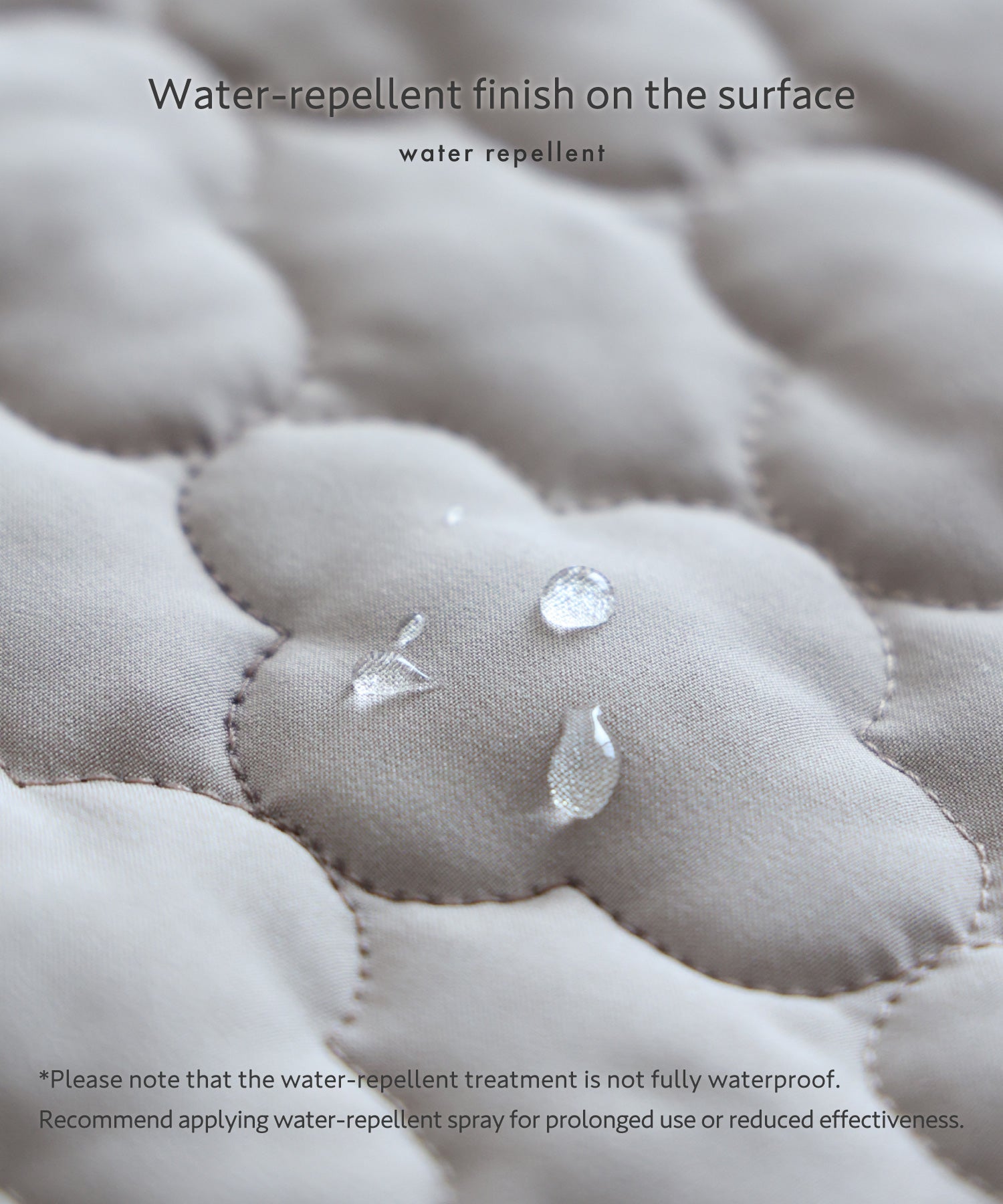 • This quilting jacket features a reliable water-repellent finish. Made from soft polyester material, it reduces any stiff or bulky feel. *Please note that the water-repellent treatment is not fully waterproof. For repeated use or when the effect diminishes, we recommend applying a water-repellent spray.