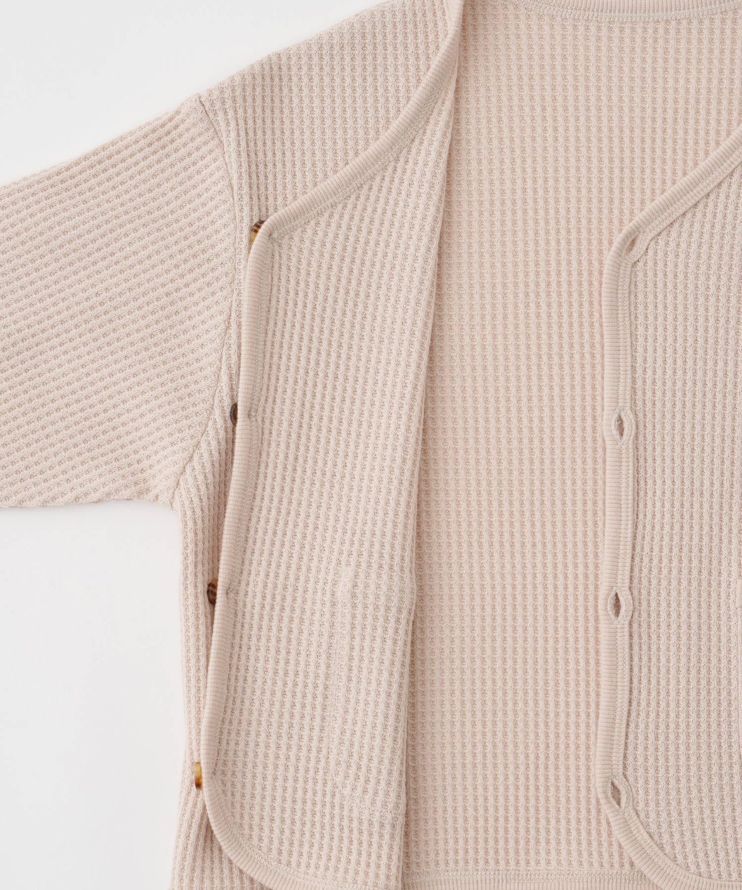 • Made from authentic, textured waffle fabric with a three-dimensional look, this piece is soft, fluffy, and stretchy for a gentle, comfortable fit. The contrast rib trim adds a stylish accent, and the lightweight yet just-right thickness makes it perfect as a quick-on layer for babies and kids, suitable for wear across multiple seasons.