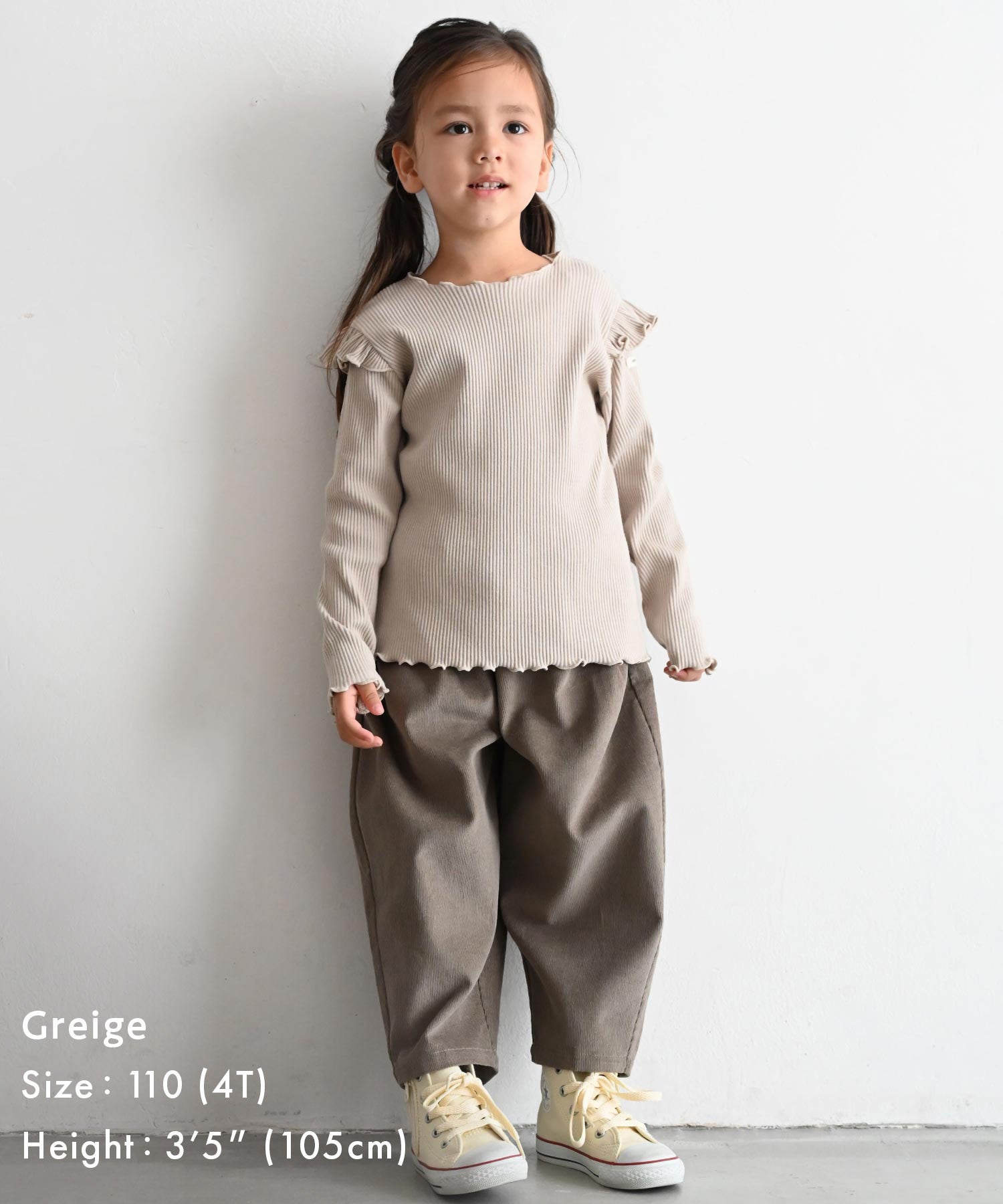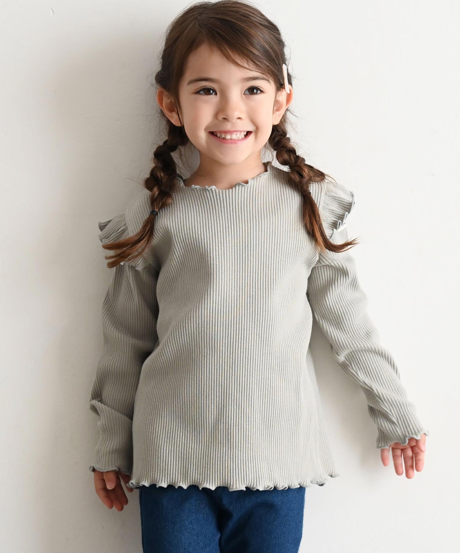 【AW】Shoulder-Frill Ribbed Long-Sleeve T-Shirt