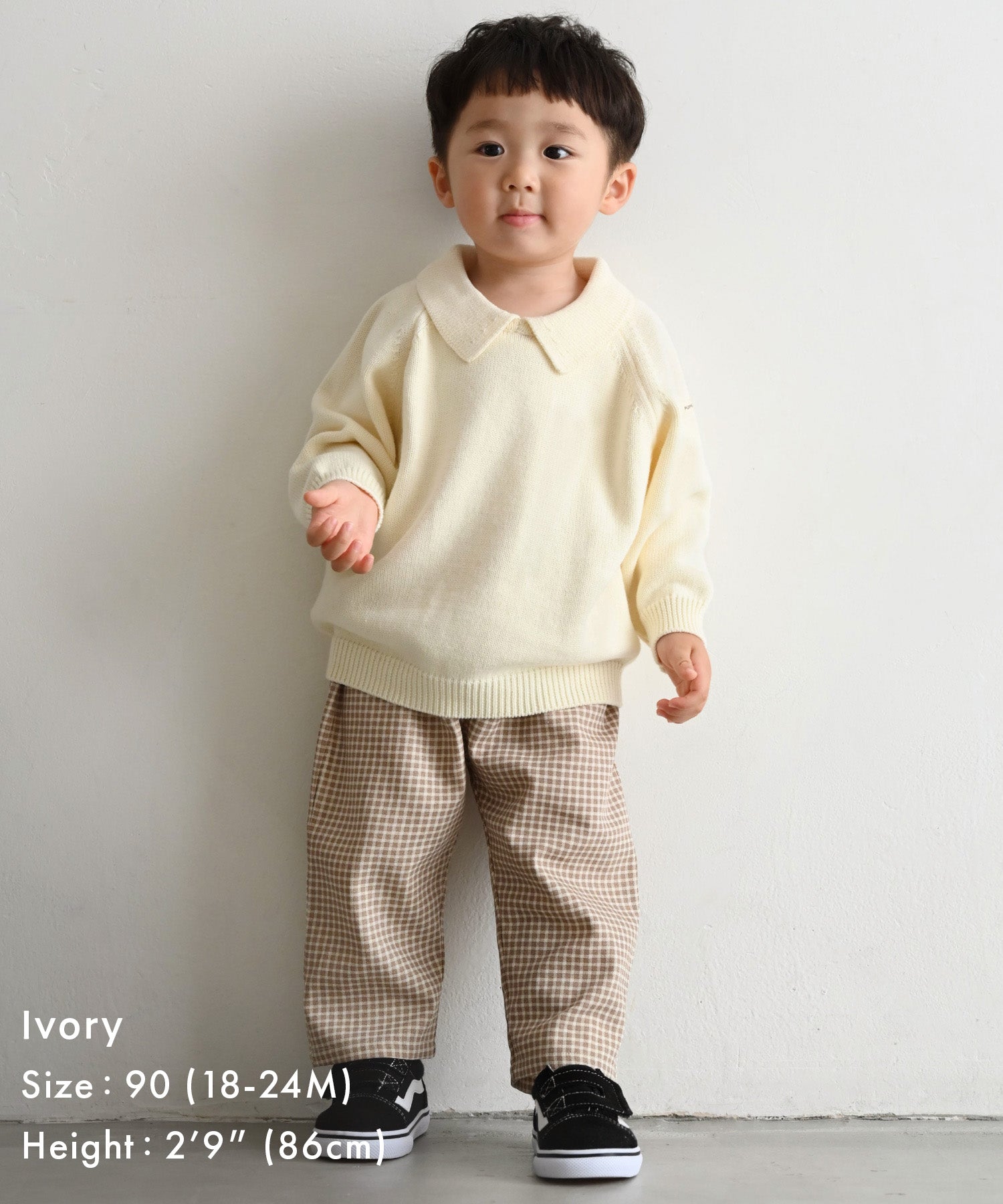 • Designed with a focus on ease of movement and fit, this knit features raglan sleeves. Considering that it’s for children, the sleeves allow free shoulder and arm movement while minimizing the appearance of broad shoulders, creating a clean, childlike silhouette that looks very neat.