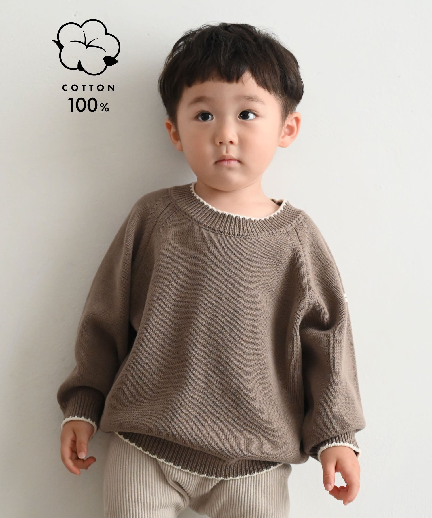 • Designed with a focus on ease of movement and fit, this knit features raglan sleeves. Thoughtfully made for babies, the design allows free shoulder and arm movement while minimizing the appearance of broad shoulders, creating a clean, baby-friendly silhouette that looks neat and streamlined.
