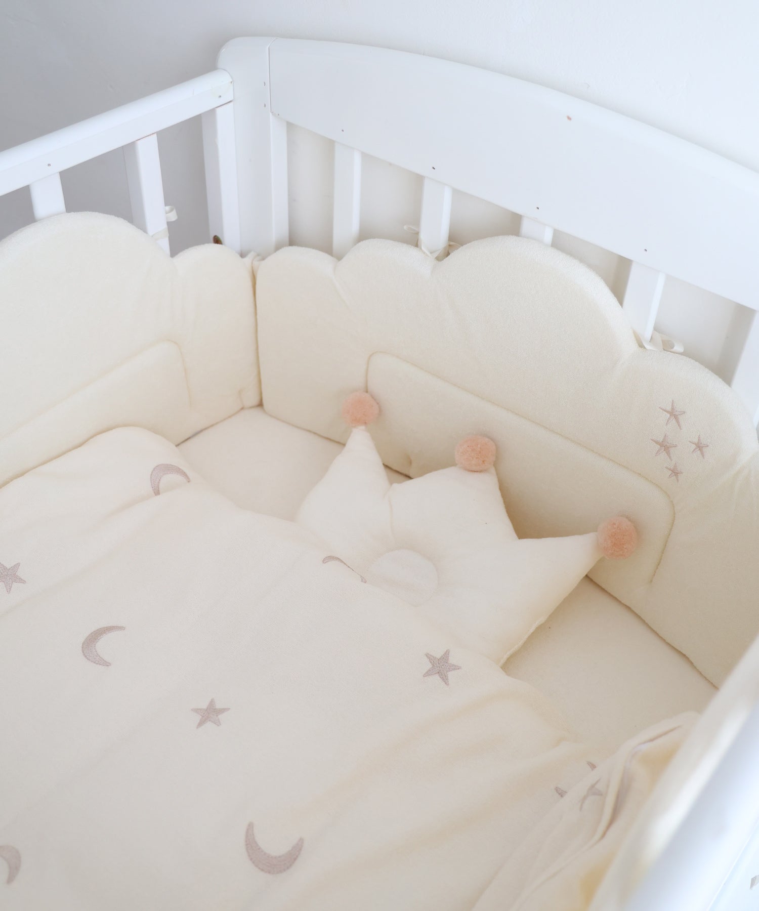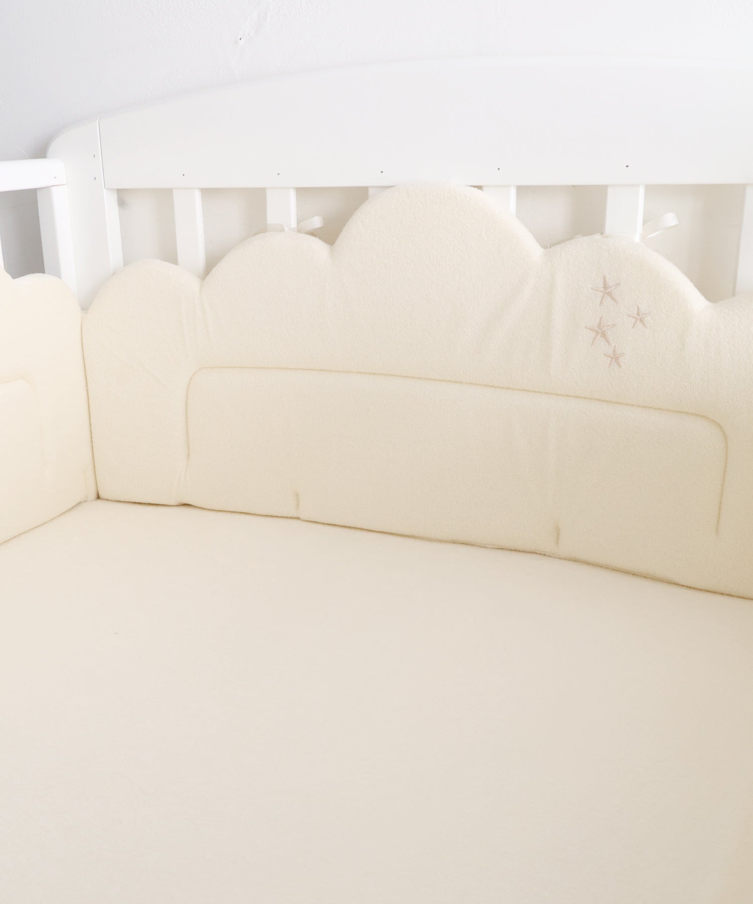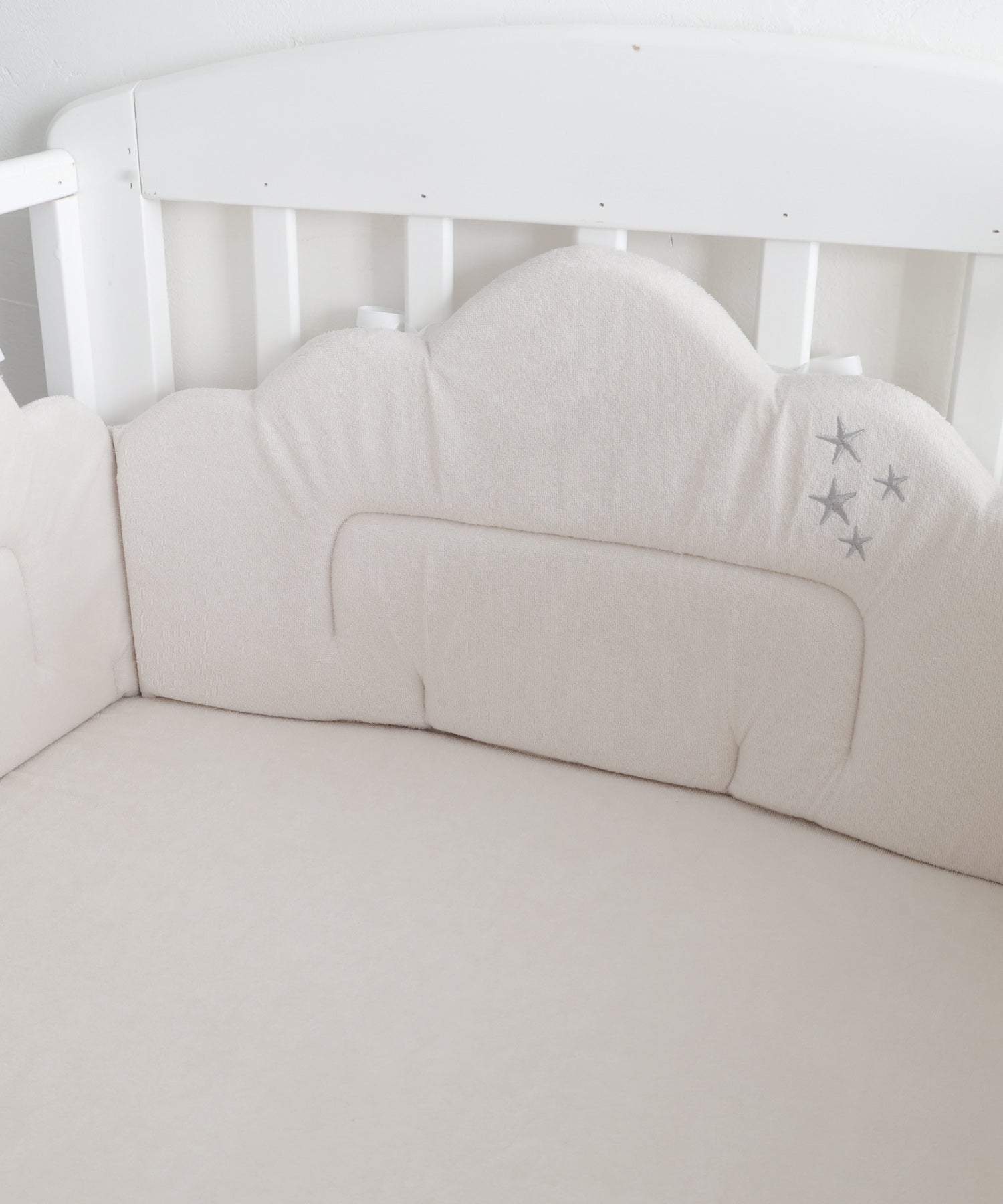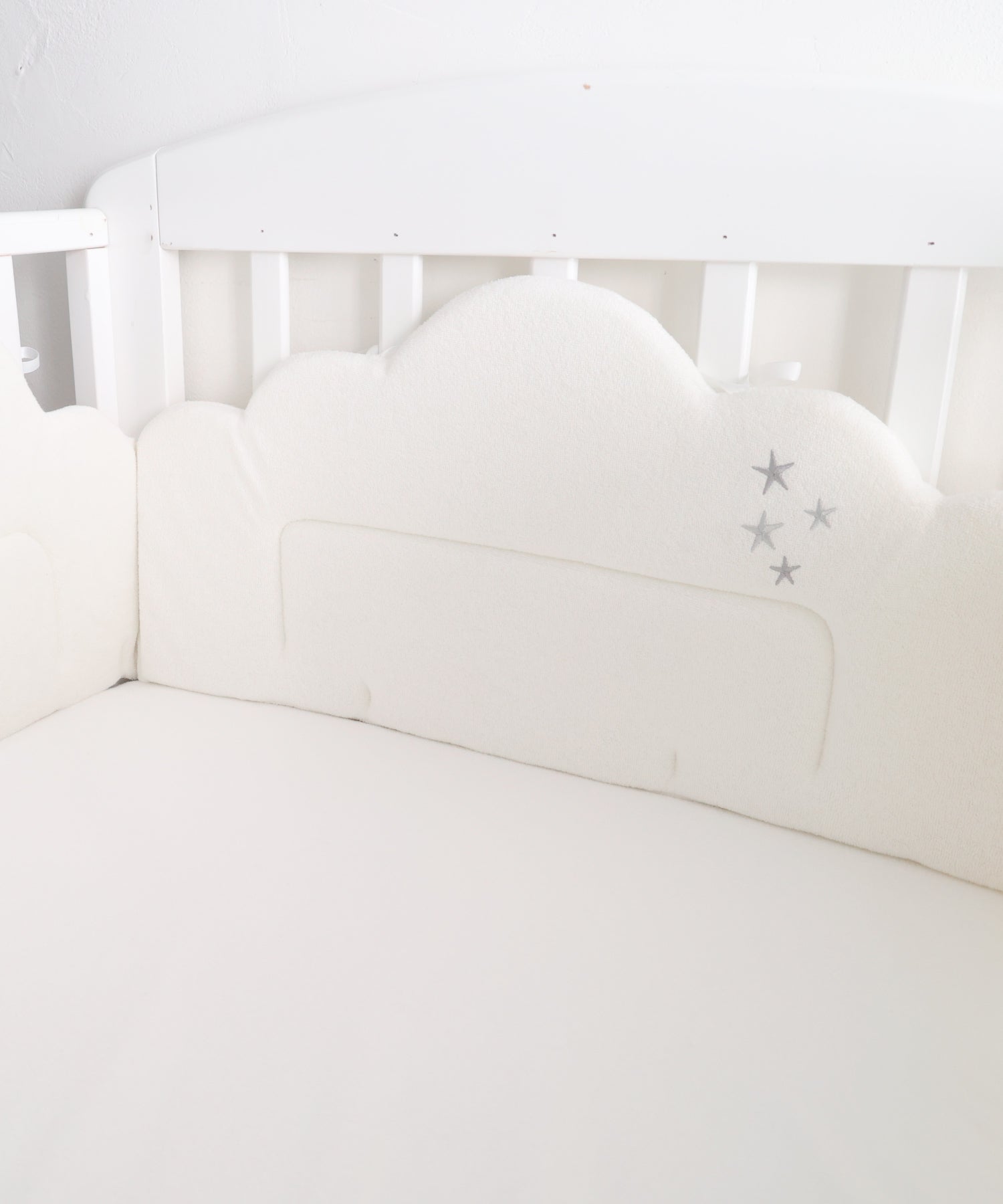 แผ่นกันกระแทกเตียงรูปเมฆน่ารักที่ทำให้ลูกน้อยของคุณดูเหมือนกำลังนอนหลับอย่างสงบสุขท่ามกลางหมู่เมฆ
